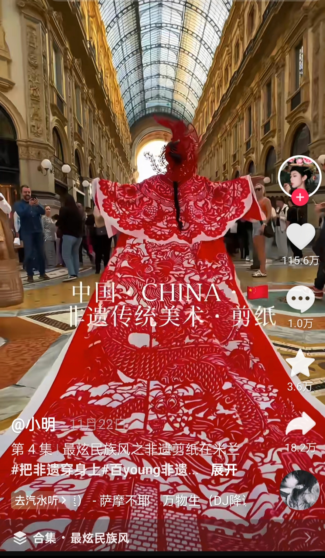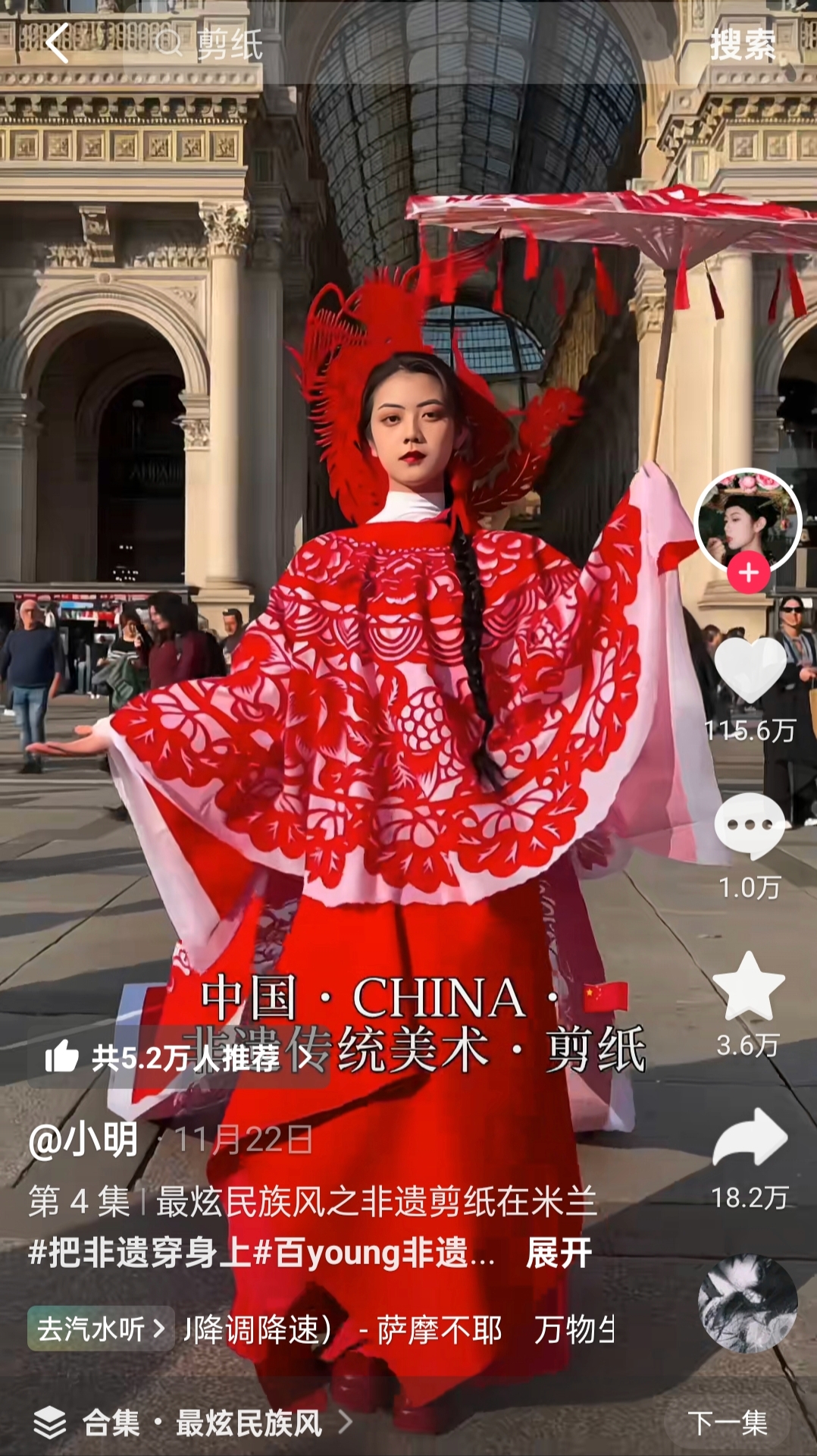 近日,一位文化傳承博主身著一身精美絕倫的紅色剪紙服裝現(xiàn)身意大利米蘭街頭,瞬間成為眾人焦點(diǎn),外國(guó)友人紛紛駐足拍照,相關(guān)視頻也在網(wǎng)絡(luò)上迅速走紅。這件在米蘭街頭吸睛無(wú)數(shù)的剪紙服裝,正是衡水濱湖新區(qū)悅納百川剪紙非遺傳承人李娜的作品。