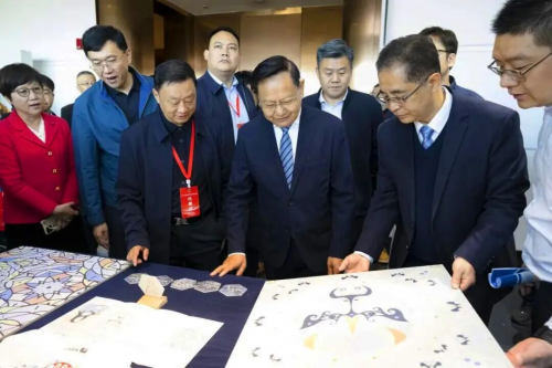 這款剪紙服裝以布為材,長(zhǎng)達(dá)5米,將傳統(tǒng)剪紙與國(guó)風(fēng)漢服精妙融合,融入華表、龍、長(zhǎng)城、迎客松、牡丹等極具中國(guó)特色的元素。服裝上巨龍盤桓華表之上,龍象征著龍騰盛世、吉祥如意,華表寓意中華民族社稷永固,下擺處采用了代表中國(guó)堅(jiān)韌精神、團(tuán)結(jié)氣魄的傳統(tǒng)元素——萬(wàn)里長(zhǎng)城,整幅作品彰顯國(guó)家的繁榮昌盛。
