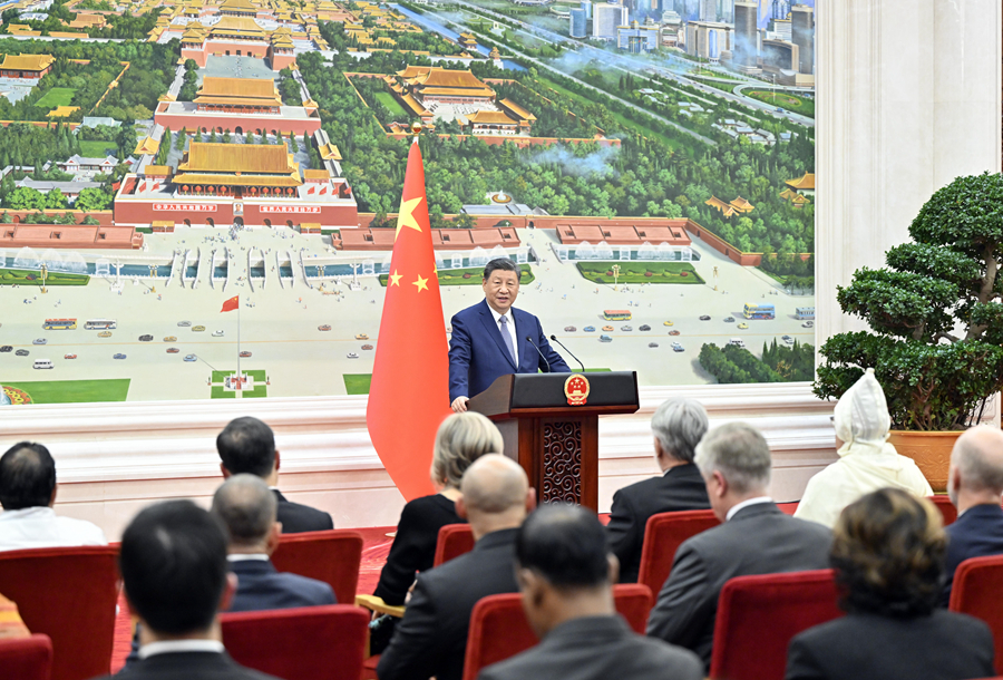 儀式結束后,習近平在北京廳對使節們發表講話。