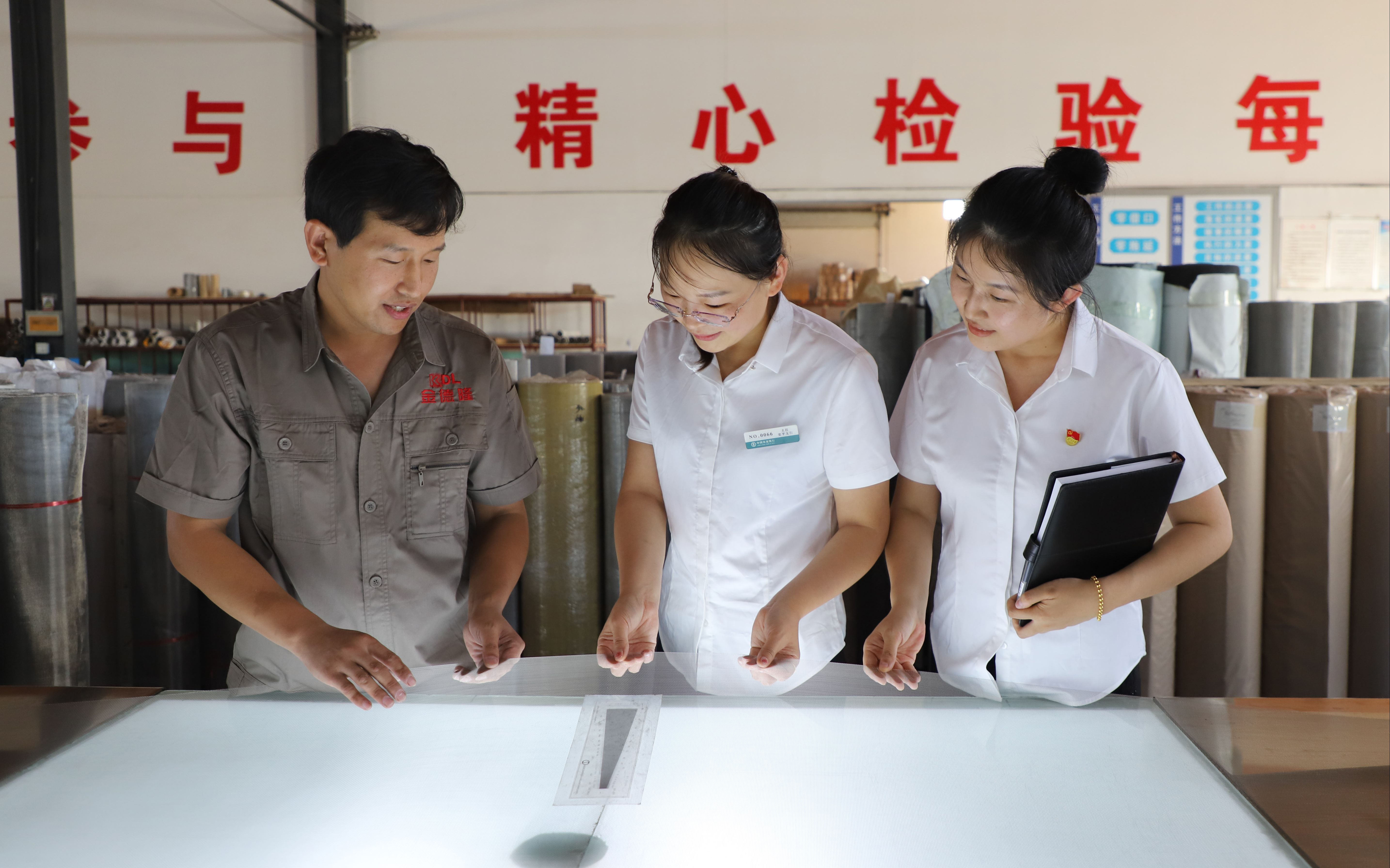 農行衡水分行創新“冀群貸”產品,支持特色集群產業發展。圖為安平支行客戶經理到安平絲網企業了解企業生產情況。