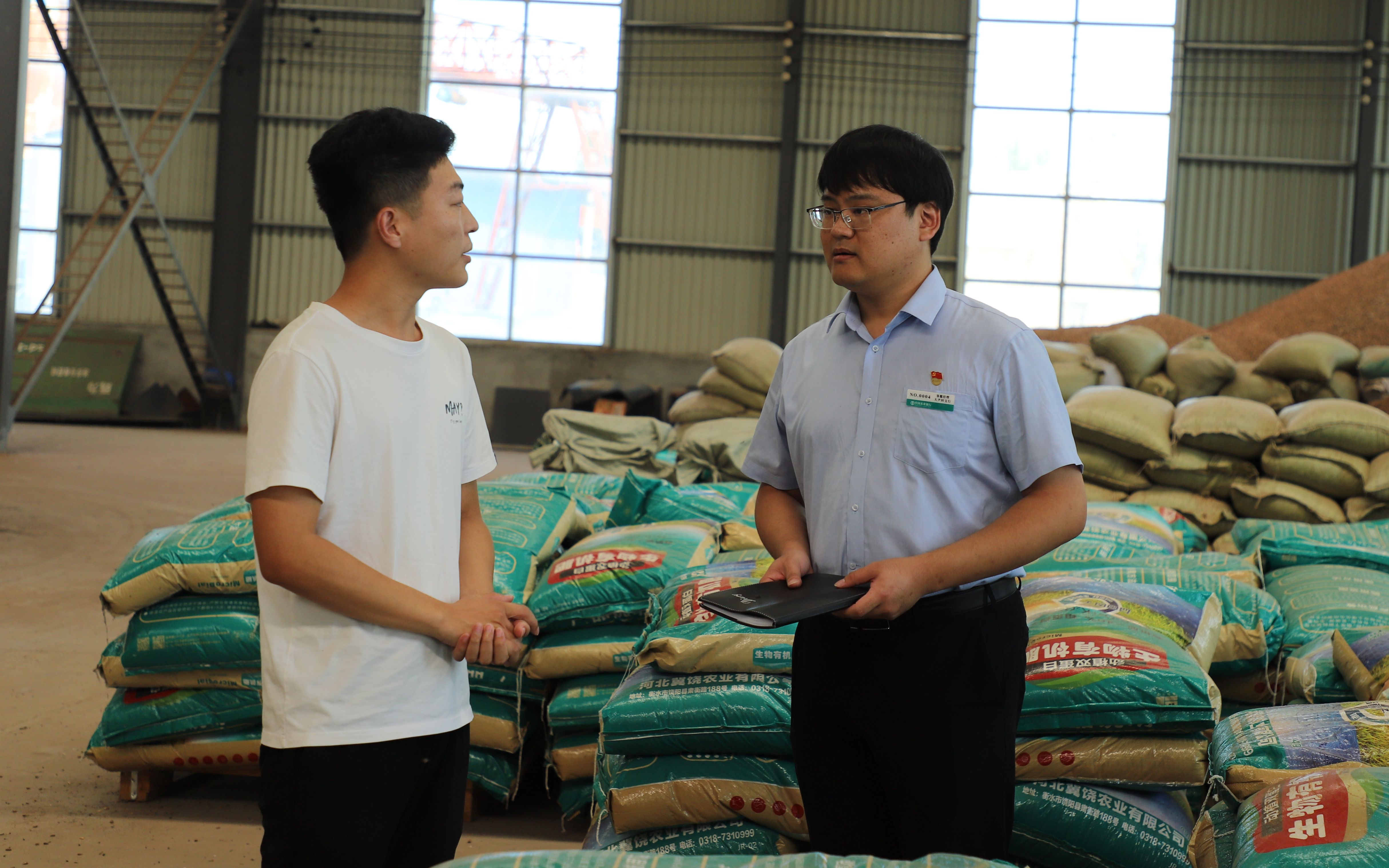 農行衡水分行不斷加大“三農”領域金融供給,為實現糧食穩產增收貢獻農行力量。圖為饒陽支行客戶經理到忠大農業科技有限公司做貸后管理。