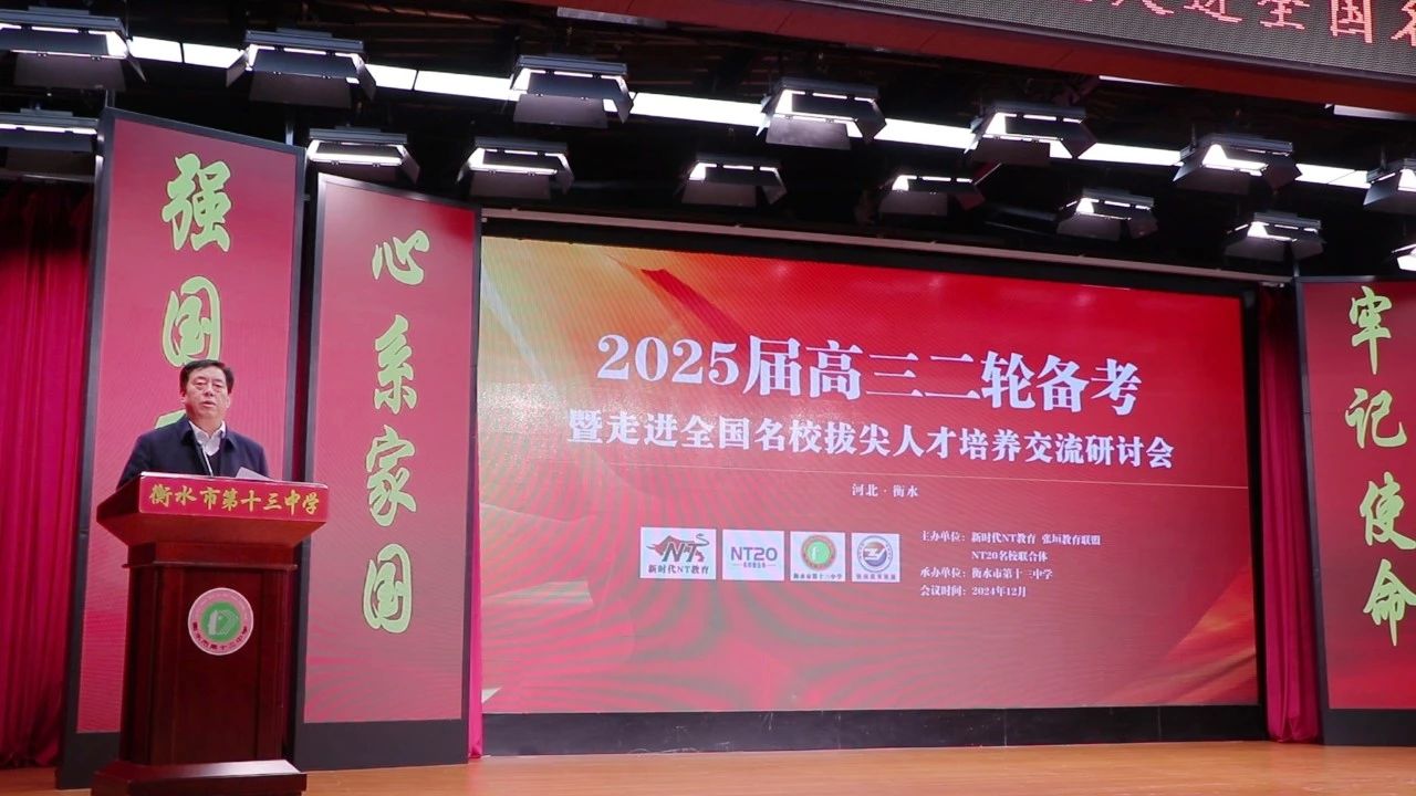 為提升高三二輪備考的科學(xué)性與精準(zhǔn)性,幫助教師們?cè)趥淇贾杏械姆攀福瑴?zhǔn)確把握教學(xué)與高考改革的發(fā)展趨勢(shì)及考試規(guī)律,近日,衡水十三中攜手新時(shí)代NT教育共同舉辦了2025屆高三二輪備考暨走進(jìn)全國(guó)名校拔尖人才培養(yǎng)交流研討會(huì)。此次研討會(huì)匯聚了數(shù)百位教育同仁,大家共同探討學(xué)科備考策略,交流備考心得。