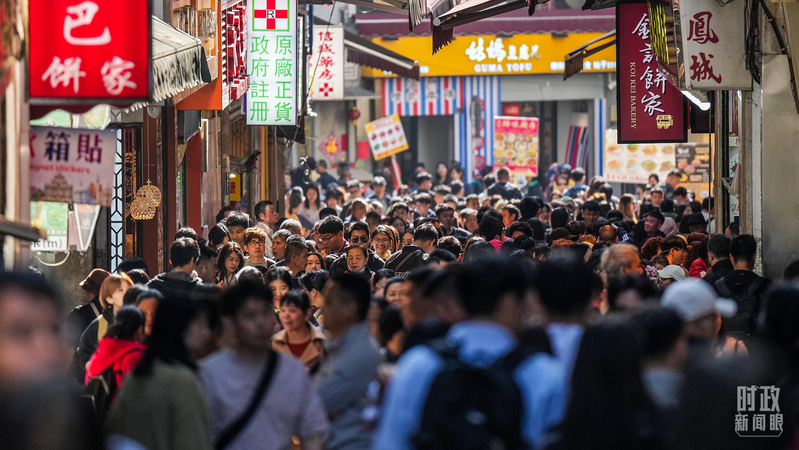 △澳門街頭人流如織。(總臺記者李晉拍攝)