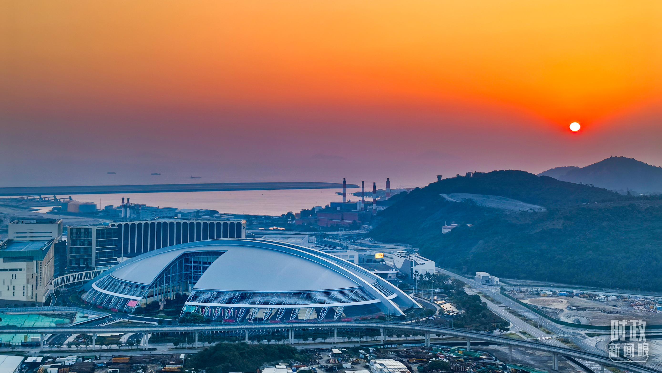 △12月20日,朝霞映襯下的澳門東亞運動會體育館。(總臺央視記者張垚拍攝)