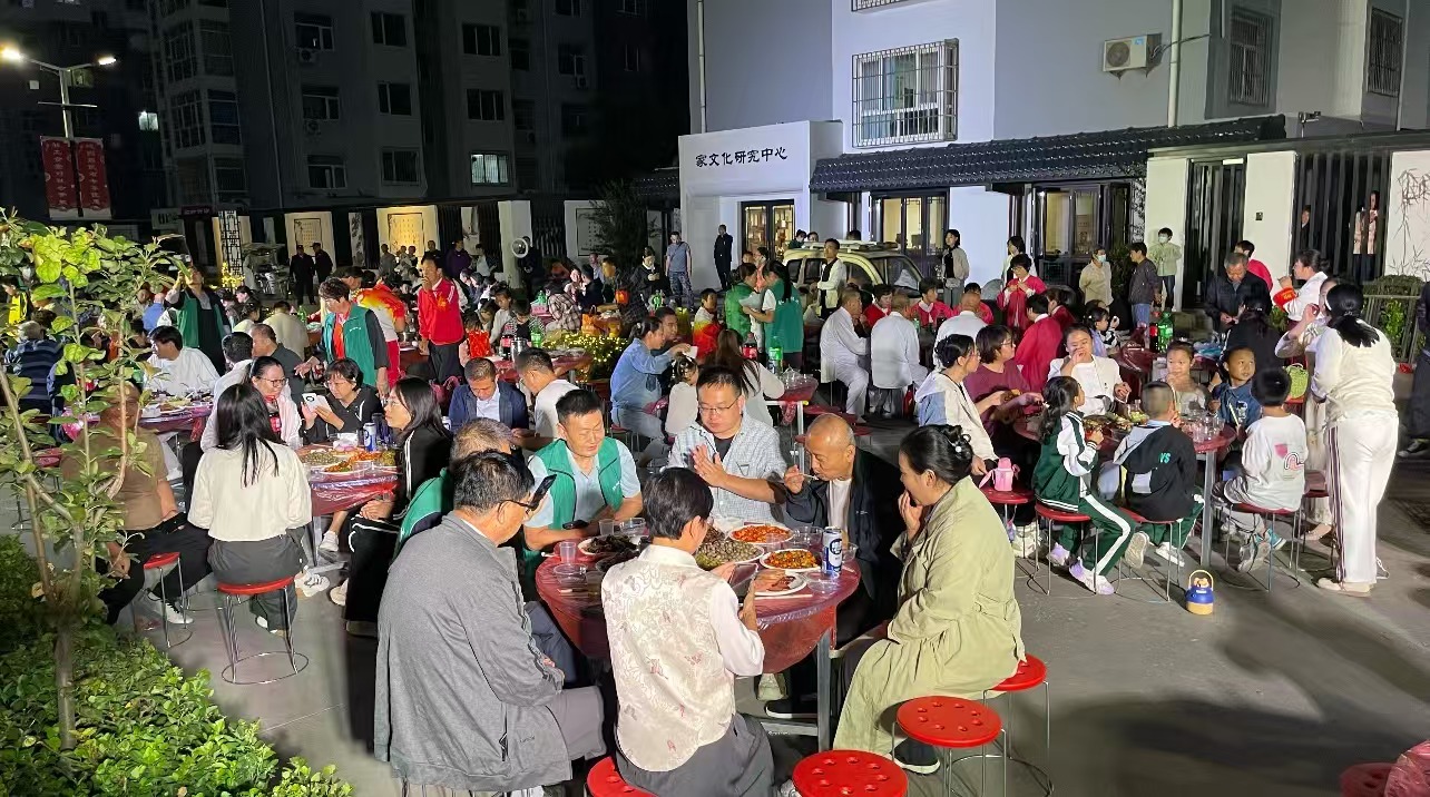 中秋節“百家宴”上,居民們從各自家中端來熱氣騰騰的拿手好菜,擺到一張桌上,親切地聊著家常,凝聚的不僅是人氣,更是升騰的煙火氣和濃濃的鄰里情。