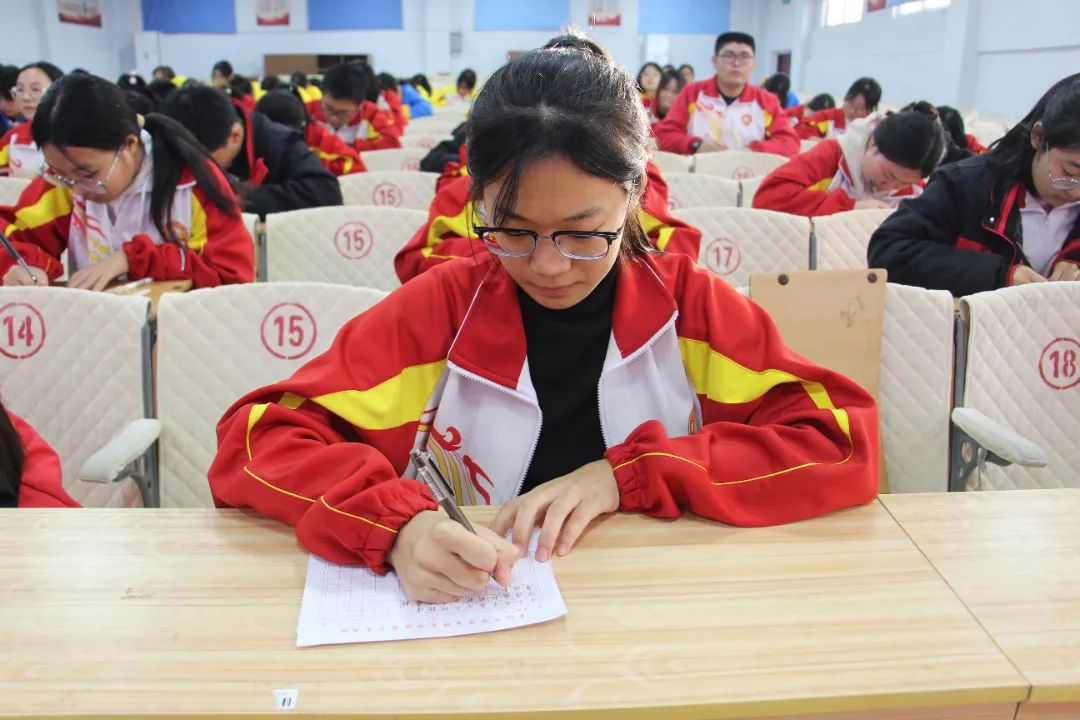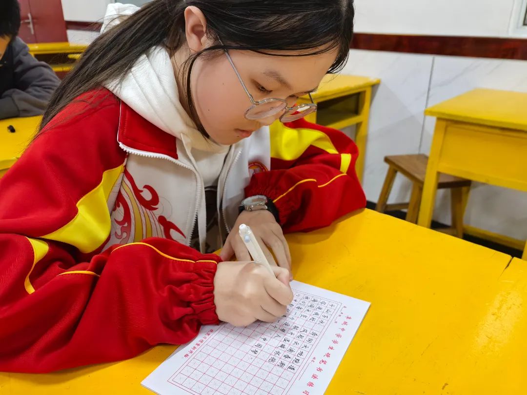 參賽內(nèi)容由學(xué)校團(tuán)委統(tǒng)一選定,各班參賽學(xué)生在規(guī)定時間內(nèi)完成書寫。參賽學(xué)生個個握筆正確,坐姿端正,用心書寫每一個筆畫、每一個漢字。參賽作品筆畫流暢,橫平豎直,結(jié)構(gòu)勻稱,整體美觀。