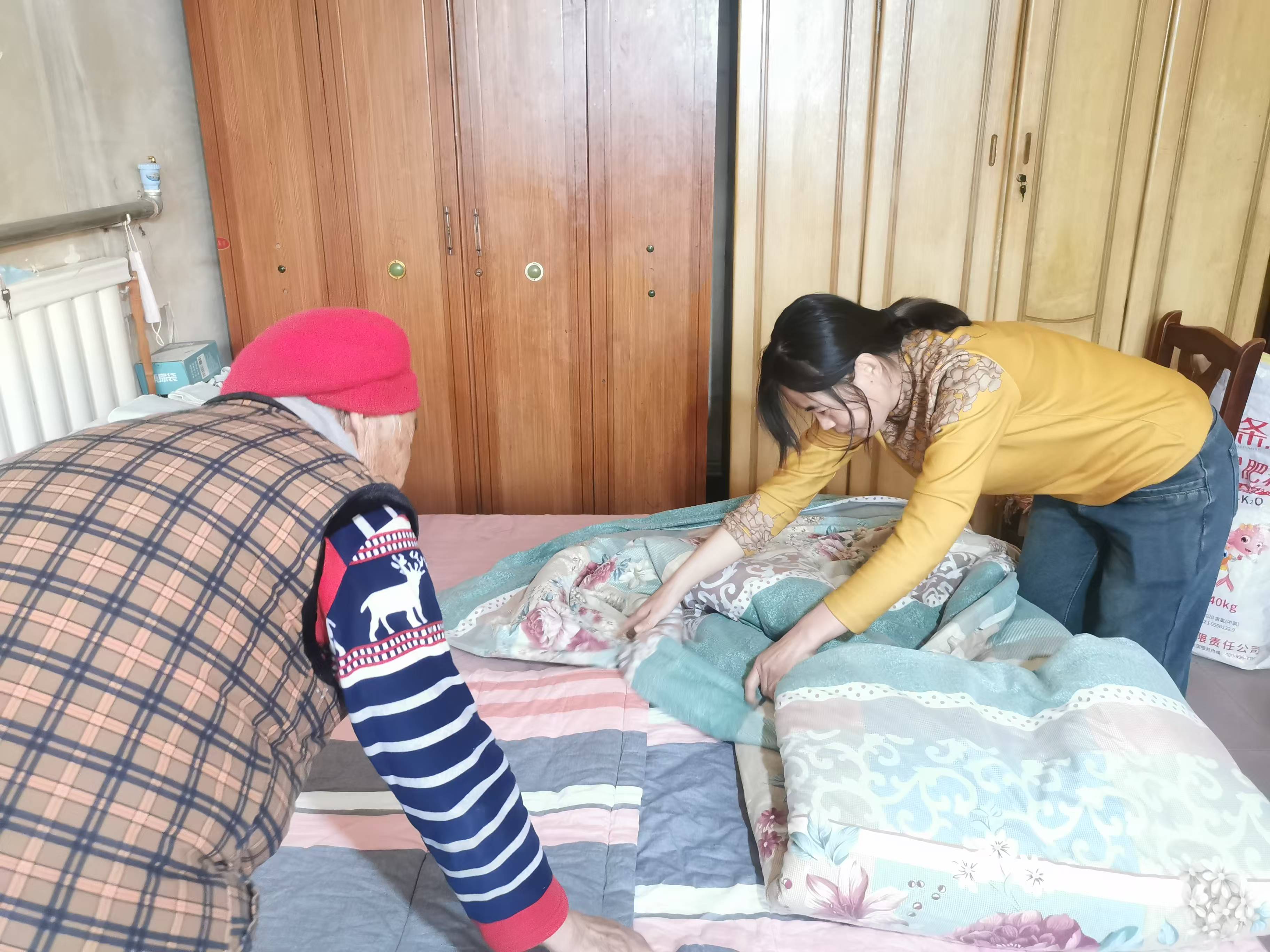 與老人聊完家常,李建泉夫婦關(guān)切地詢問老人夜里睡得暖不暖,被褥是否足夠御寒,在得知老人一切安好后,他們便開始為老人洗洗涮涮,整理床鋪。等老人安詳?shù)厮拢麄儽爿p輕退出房間。