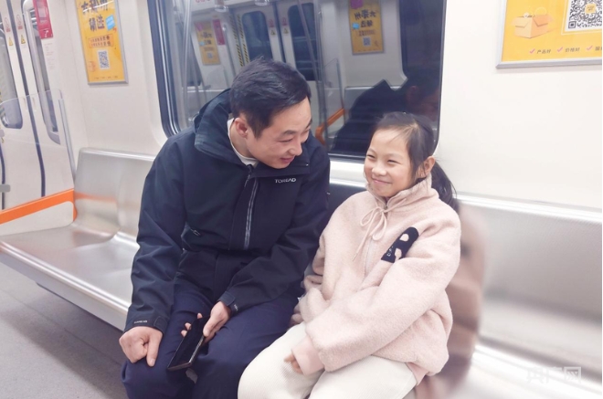 工作之余,王安永帶孩子乘坐地鐵感受鄭州變化(央廣網(wǎng)記者 夏莎 攝)