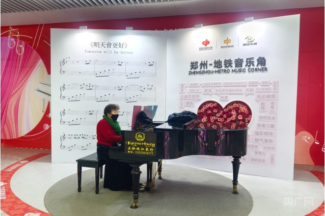 市民在地鐵音樂角彈鋼琴(央廣網(wǎng)記者 郝振青 攝)
