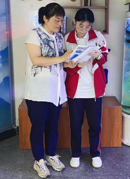 張玲紅老師正在為學(xué)生解答問(wèn)題。