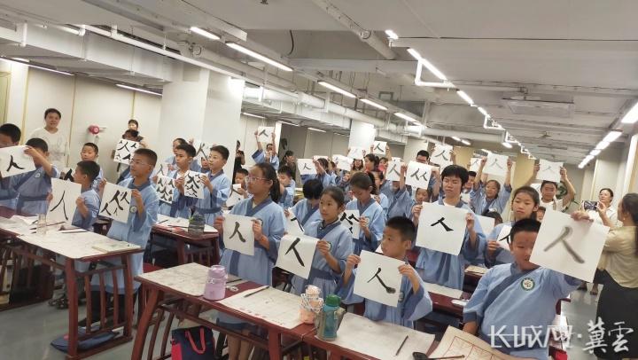 昊和·沁園“在田學堂”教室內,孩子們正在參加“開筆禮”。資料圖