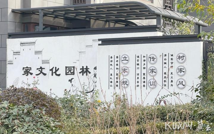 12月16日,冬日暖陽普照下的昊和·沁園小區,一排排中式樓宇錯落有致。從北門起始,一條南北走向的“家風大道”赫然呈現在眼前,遠遠望去,在白墻黛瓦的映襯下,整條大道古樸雅致又富有文化內涵。