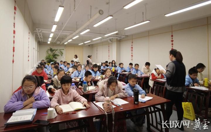 昊和·沁園“在田學堂”義工講師正在帶領孩子們誦讀經典詩文。 杜俊穎 攝