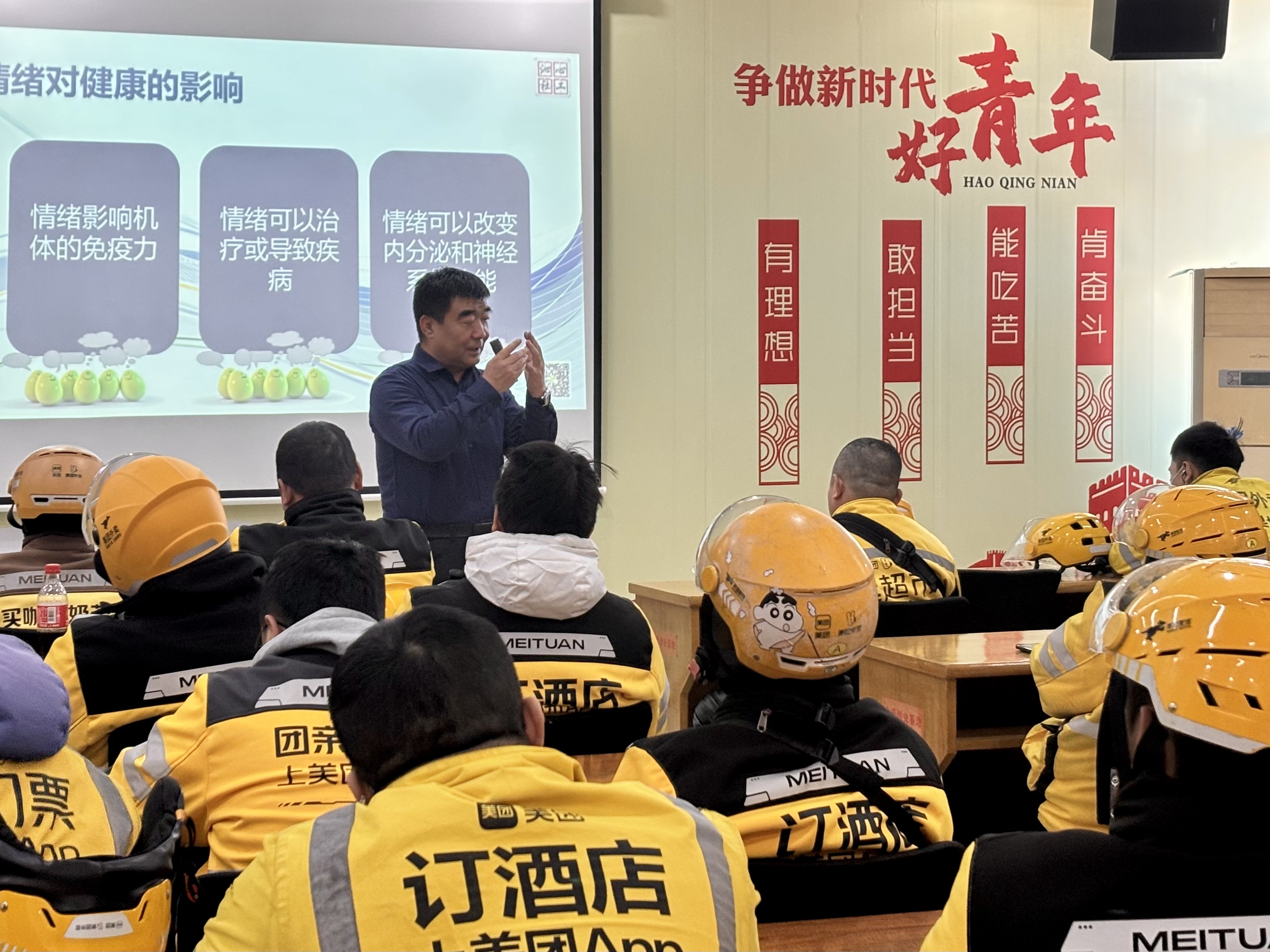 12月30日下午,我市首期外賣從業(yè)青年心理健康輔導(dǎo)活動(dòng)在衡水眾成創(chuàng)業(yè)孵化基地成功舉辦,為30名美團(tuán)外賣從業(yè)青年傳授減壓小知識、開展針對性心理輔導(dǎo),送上冬日的溫暖與關(guān)懷。
