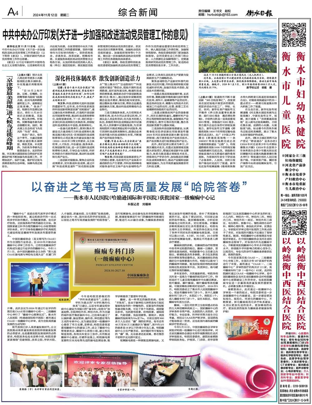 今年國家第四批CAAE一、二級癲癇中心申報工作,全國共計有167家醫療機構進行了申報,最終通過“CAAE一、二級癲癇中心”評審的醫療機構共計111家,其中癲癇專科門診(一級中心)63家。此次哈院順利通過CAAE一級癲癇中心評審,是中國抗癲癇協會及河北省抗癲癇協會對哈院癲癇中心前期建設工作的肯定,也是醫院癲癇專業進一步贏得高質量發展的重要契機,必將惠及衡水幸福民生。