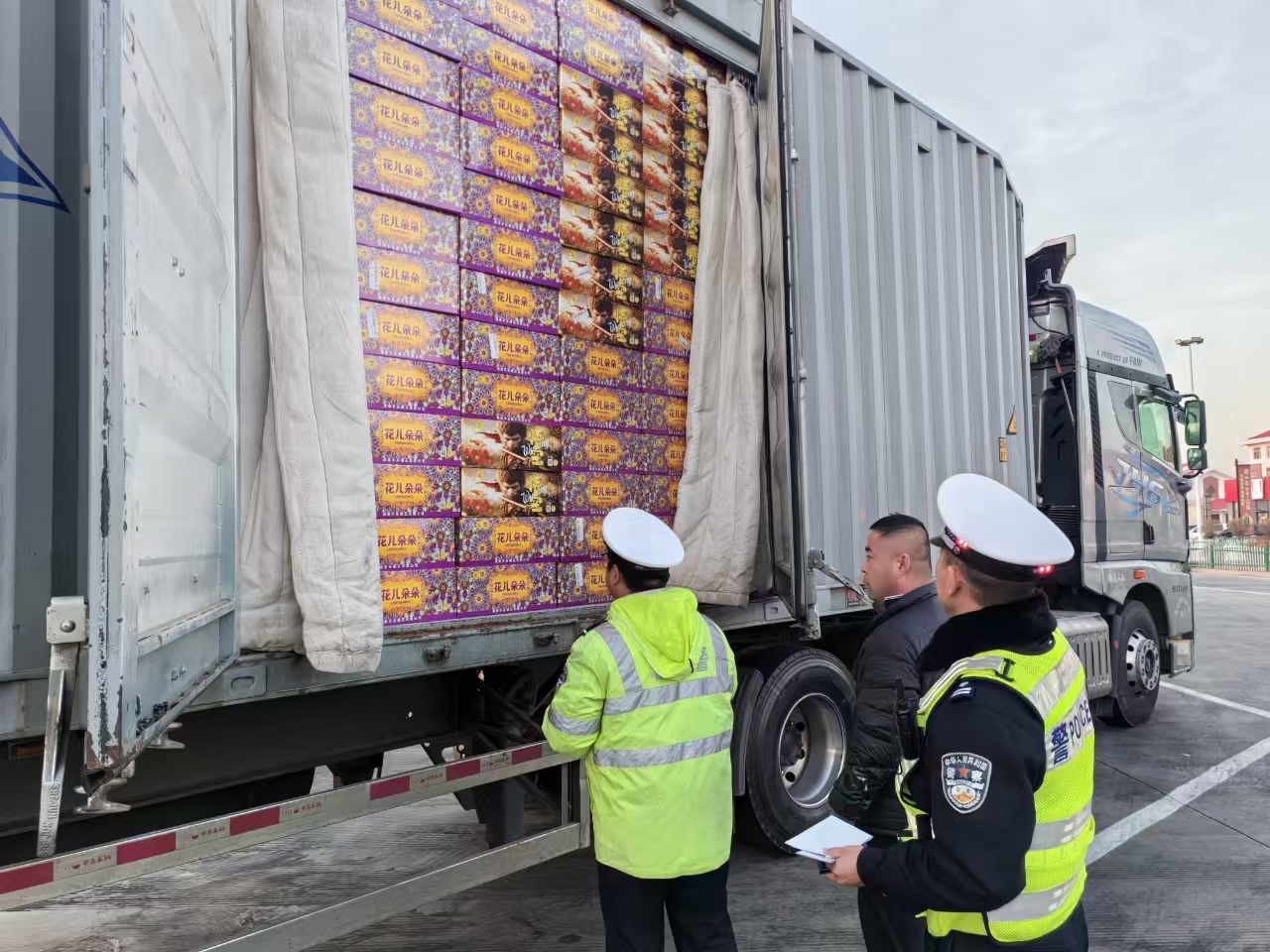 此后,大隊民警于2024年12月23日、25日在深州服務區分別查處兩輛運輸煙花爆竹無警示標志的貨車,并對駕駛人因運輸煙花爆竹車輛未按規定懸掛安全警示標志的違法行為進行了處罰。