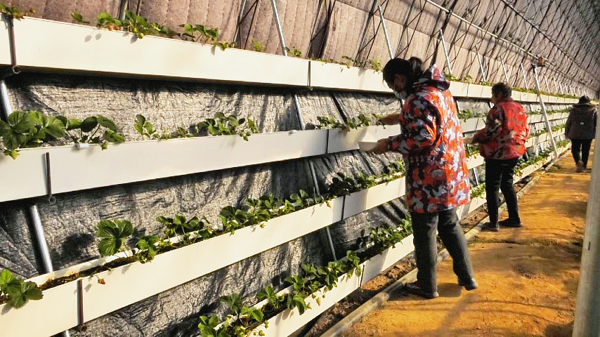 張東生介紹,他們種植的草莓品種是“紅顏九九”,“個頭兒大,色澤鮮艷,口感香甜,很受市場歡迎!”為讓消費者吃到最優質的草莓,園區通過科學種植和精心管護,從施肥到灌溉,從溫度到濕度,每一個環節都嚴格把控。此外,他們還采用了高架立體無土栽培技術,讓原本平地種植的草莓生長在“空中”,不僅節省了空間,提高了產量,而且更便于采摘。