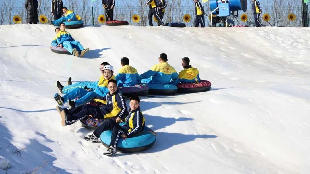 滑雪場內,白雪皚皚,百余名青少年穿好滑雪裝備、嚴陣以待。對于初次接觸滑雪的他們來說,雪上的每一個動作都充滿了新奇與挑戰。在教練的耐心教導和鼓勵下,大家勇敢又小心翼翼地邁出了第一步,認真學習動作要領,有序暢快滑行,盡情釋放活力,享受在冰雪中馳騁的快樂。緊張、認真的學習之余,大家還體驗了趣味雪圈項目,盡享冰雪滑梯帶來的“速度與激情”,在歡聲笑語中鍛煉了團隊協作能力。