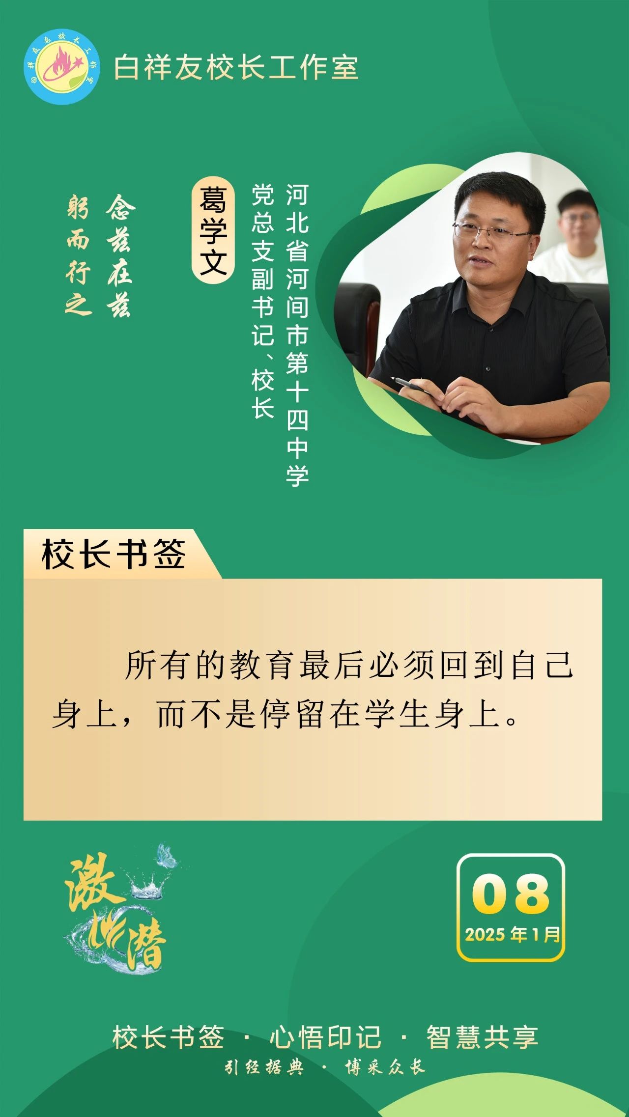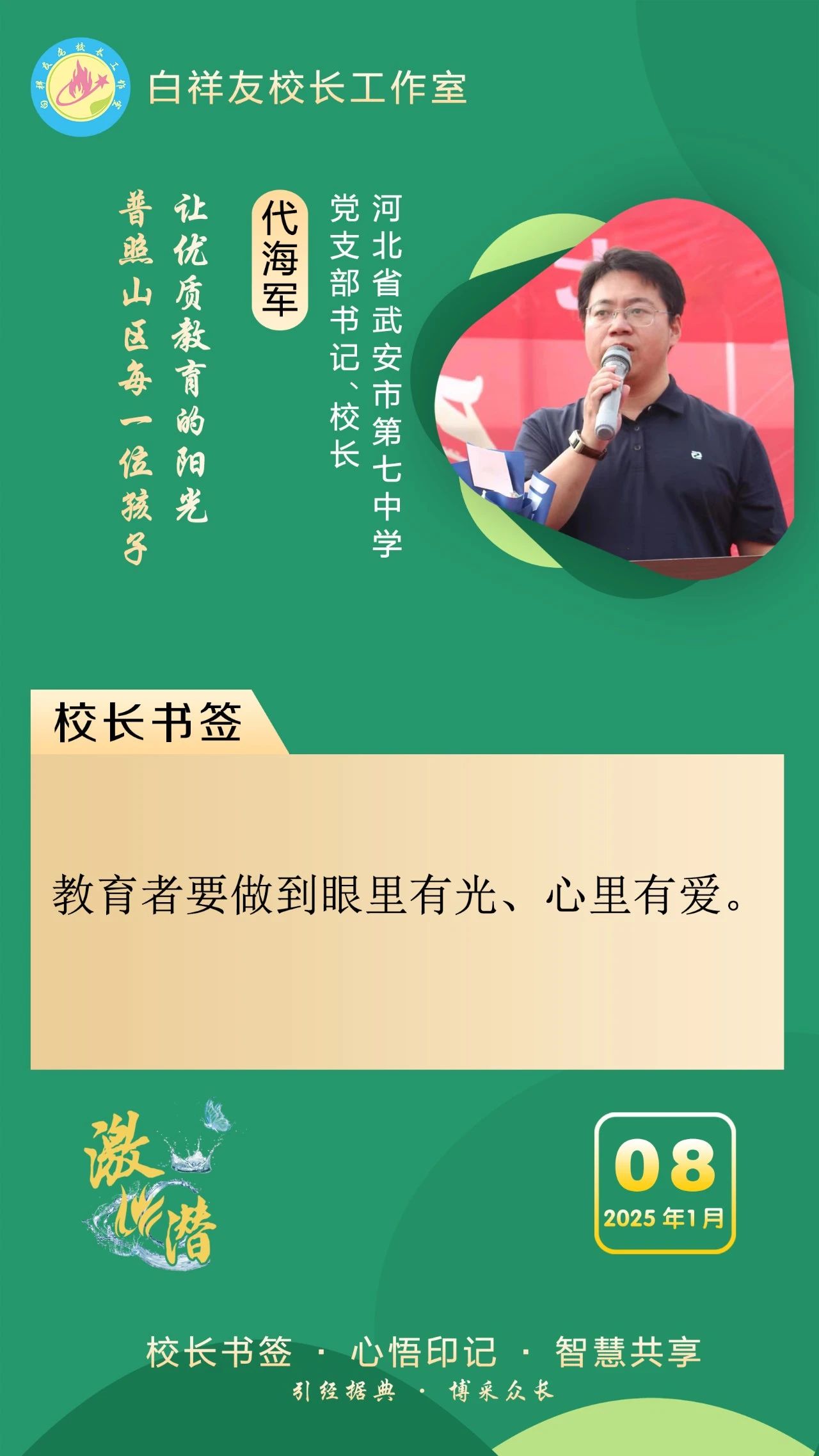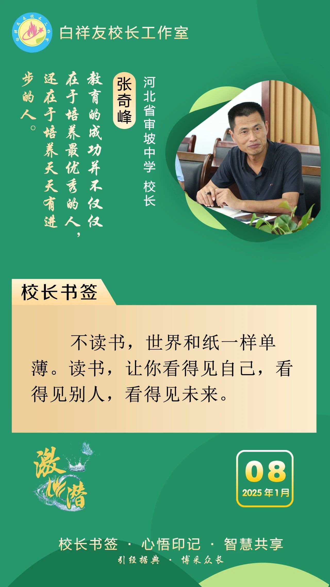 “白祥友校長工作室”成立于2019年4月,是教育部“國培計劃”中小學名校長領航工程、河北省首批名校長工作室,目前省內外成員校48個。工作室堅持“資源共享、智慧共融、互助共贏”理念,已成為思想碰撞的交流場,資源共享的品牌站,成果展示的輻射源。