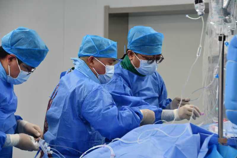 時間就是心肌,時間就是生命。為了精準確定冠狀動脈的病變情況,心血管病科主任孫啟匯決定為寧先生實施CAG術(冠狀動脈造影術)。在導管室,氣氛緊張而有序。寧先生平臥后,醫護人員嚴格按照操作規程,進行消毒、鋪巾,隨后精準地選取右側橈動脈,在局部麻醉下穿刺成功進行左右冠狀動脈造影。結果顯示,寧先生的冠狀動脈情況極為復雜,存在多處嚴重狹窄和堵塞,屬于典型的三支病變。
