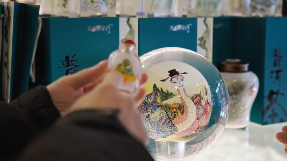 隨著春節臨近,在河北省衡水市,國家級非遺項目衡水內畫的蛇年文創產品也開始走俏。一批又一批的內畫文創產品發往海內外,傳播著中國傳統文化的獨特韻味。