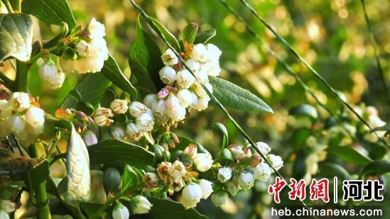 基地溫室大棚一角盛開的藍(lán)莓花。 趙健光 攝