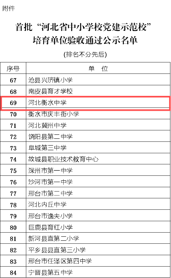 衡水中學通過首批“河北省中小學校黨建示范校”培育單位驗收
