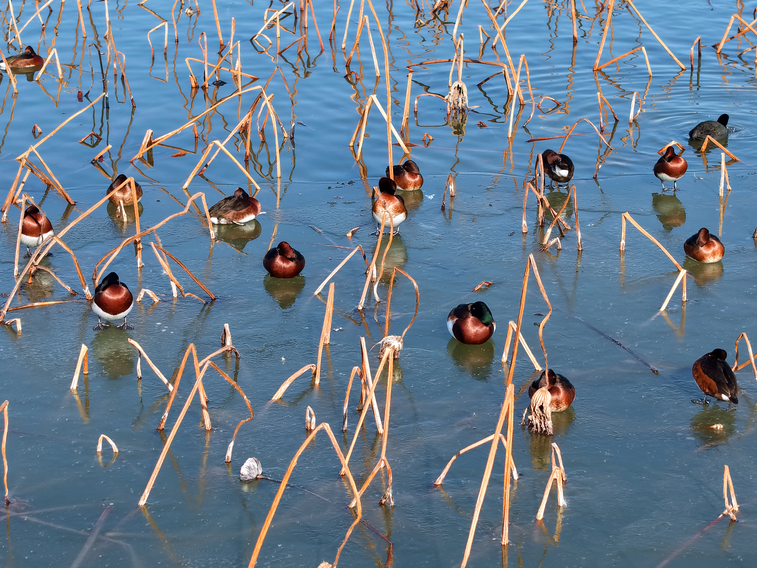 1月16日,從衡水濱湖新區資源保護局濕地生態監測科獲悉,工作人員在衡水湖國家級自然保護區進行冬季鳥類監測時,接到熱心影友提供的影像資料——120只國家一級保護野生動物青頭潛鴨在湖區罕見地一同活動。