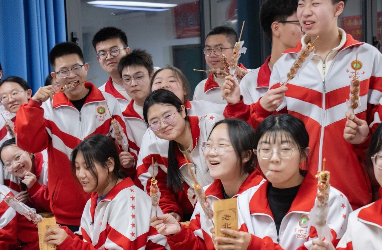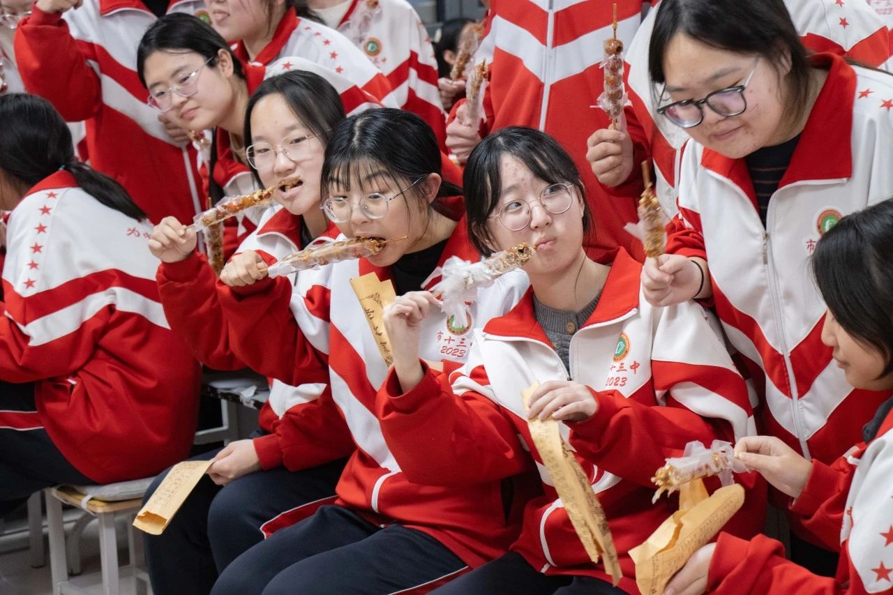 品一口柔軟的蛋糕,香香濃濃是幸福的味道。咬一口冰糖葫蘆,酸酸甜甜是成長(zhǎng)的滋味。老師同學(xué)們一起唱生日歌,許下愿望,一聲聲祝福里飽含著殷切的期望。在沖刺期末的階段中,老師們不僅為同學(xué)們準(zhǔn)備了集體生日會(huì),還有許多減壓賦能的課余活動(dòng),讓大家釋放壓力,快樂備考。