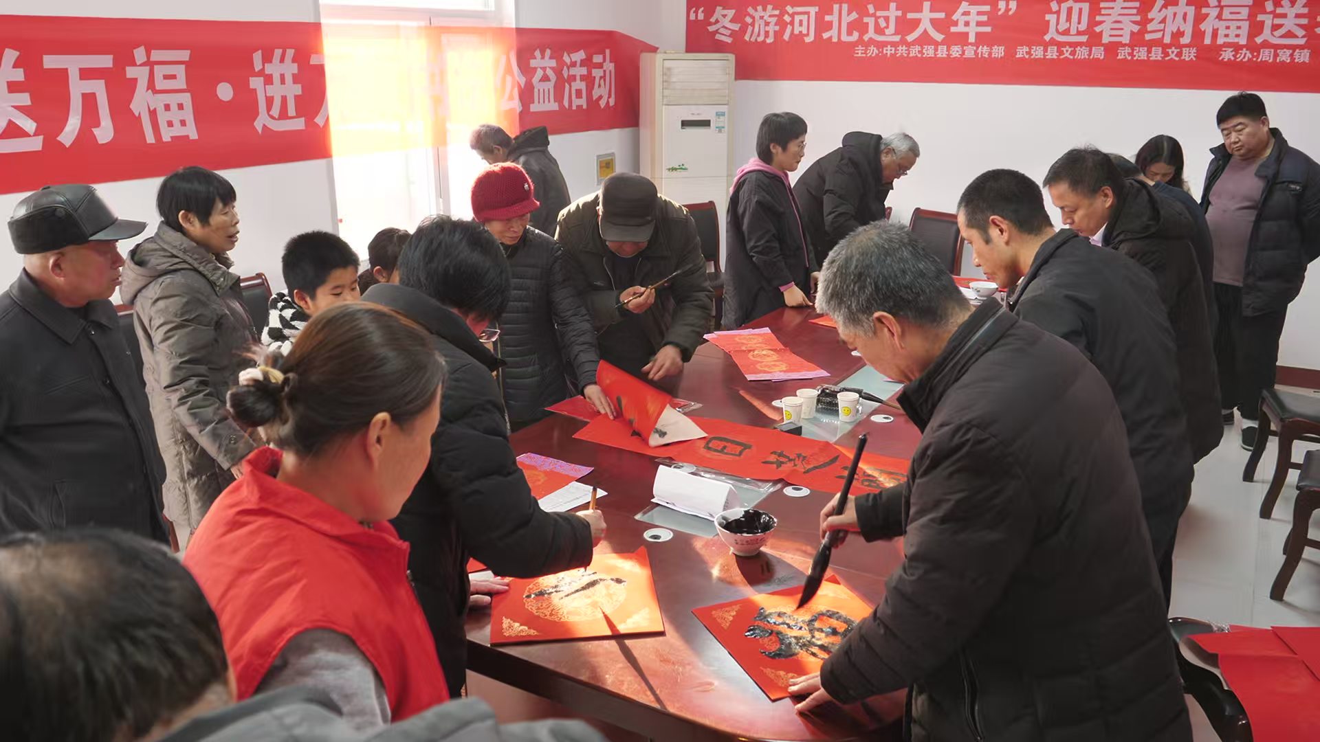 歲序更替,華章又新。1月21日,由武強縣委宣傳部、武強縣文旅局、武強縣文聯(lián)主辦,周窩鎮(zhèn)人民政府、武強縣圖書館、武強縣書協(xié)承辦的“冬游河北過大年”迎春納福送春聯(lián)活動在周窩鎮(zhèn)“全國文明村”郭家院村舉辦,活動同時舉行了武強縣書法協(xié)會周窩鎮(zhèn)分會成立儀式。