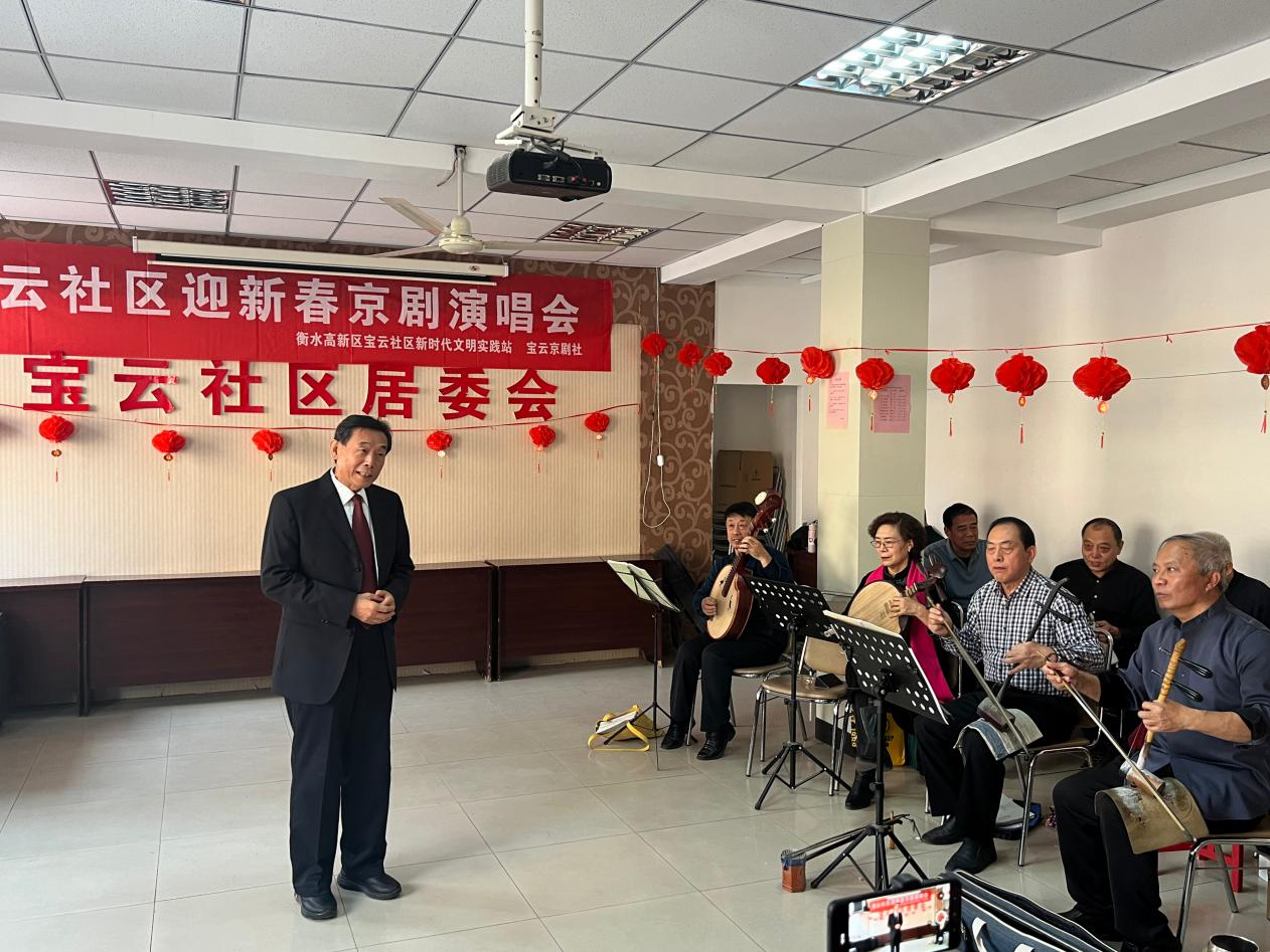 為了豐富社區(qū)居民的文化生活,迎接新春佳節(jié)的到來,近日,衡水高新區(qū)永興街道管理服務(wù)中心寶云社區(qū)舉辦了一場(chǎng)精彩紛呈的京劇演唱會(huì)。本次演唱會(huì)由寶云社區(qū)居委會(huì)聯(lián)合寶云京劇社共同策劃和組織,吸引了眾多社區(qū)居民前來觀看,共同感受傳統(tǒng)文化的魅力,營(yíng)造了濃厚的節(jié)日氛圍。