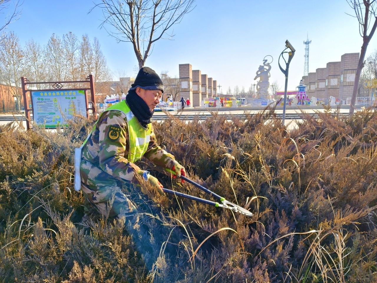 在衡水湖畔景觀大道旁,綠化工人張新義也在默默忙碌著。他手中的剪刀在枯枝間輕盈舞動,將一棵棵樹木修剪得整齊美觀。