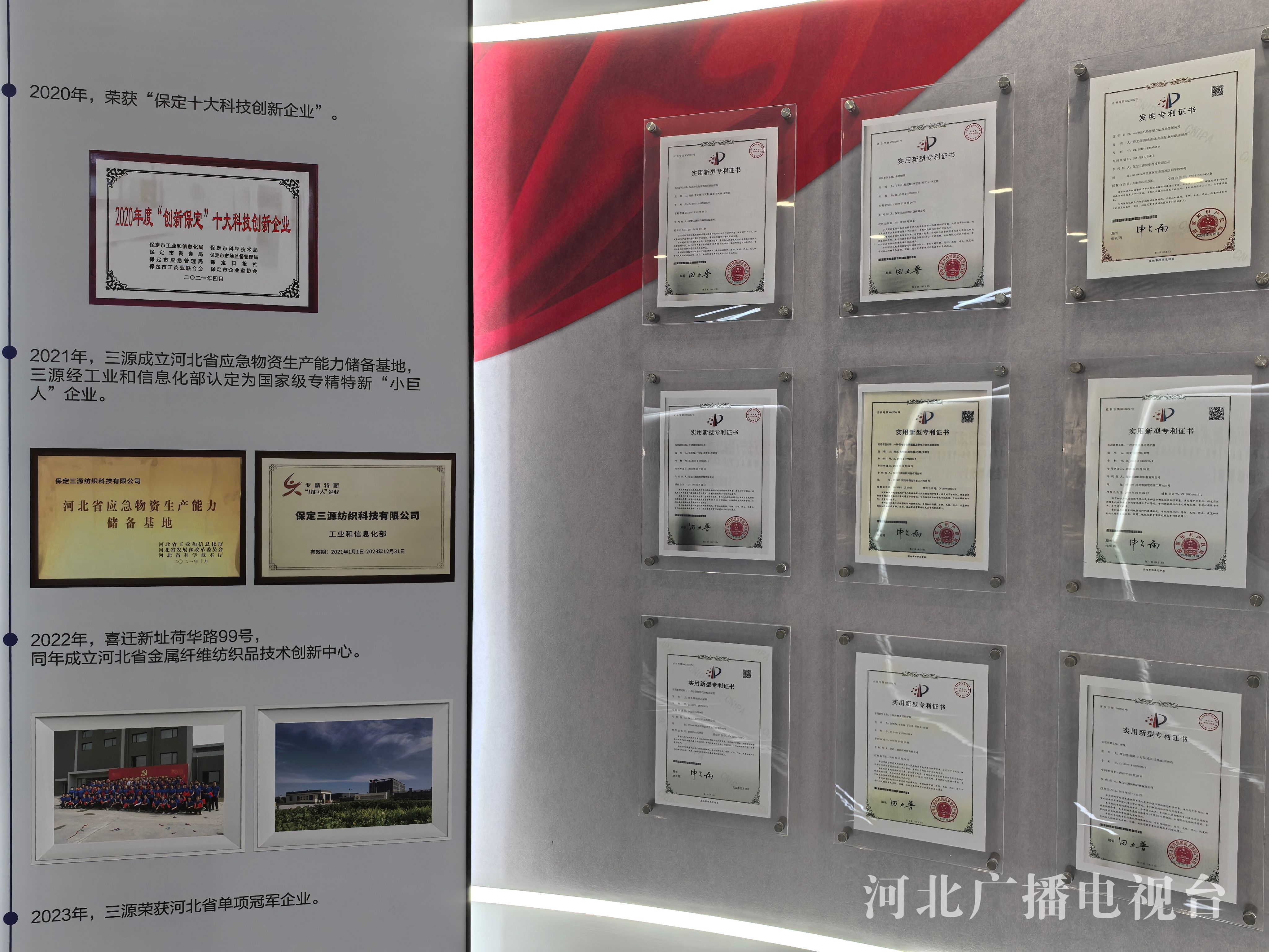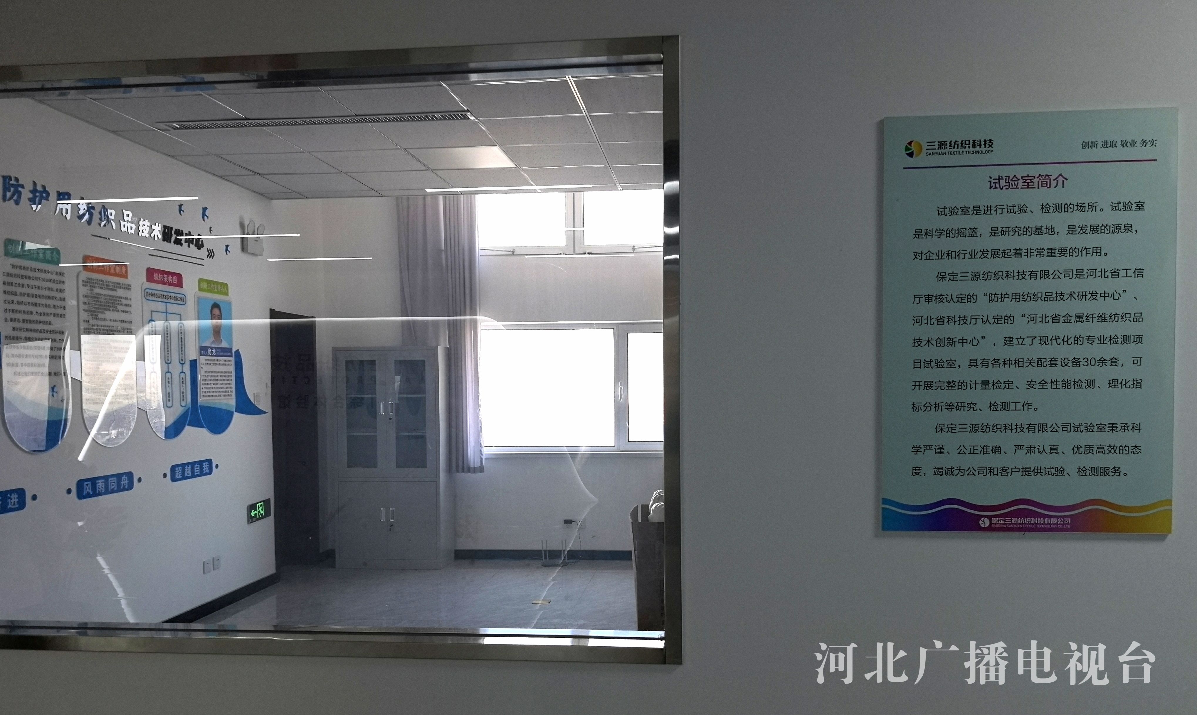 展廳旁邊是三源紡織科技公司的試驗室,也是防護用紡織品技術(shù)研發(fā)中心。作為中國紡織工程學(xué)會會員,三源紡織自主研發(fā)出150多項高新技術(shù)紡織品,主導(dǎo)產(chǎn)品有金屬系列紡織制品、高分子纖維材料紡織制品、個體防護服裝(面料)等。公司擁有棉紡、毛紡、金屬紡三條生產(chǎn)線,具備機織、針織、編織、服裝設(shè)計、制衣一條龍生產(chǎn)與加工能力。
