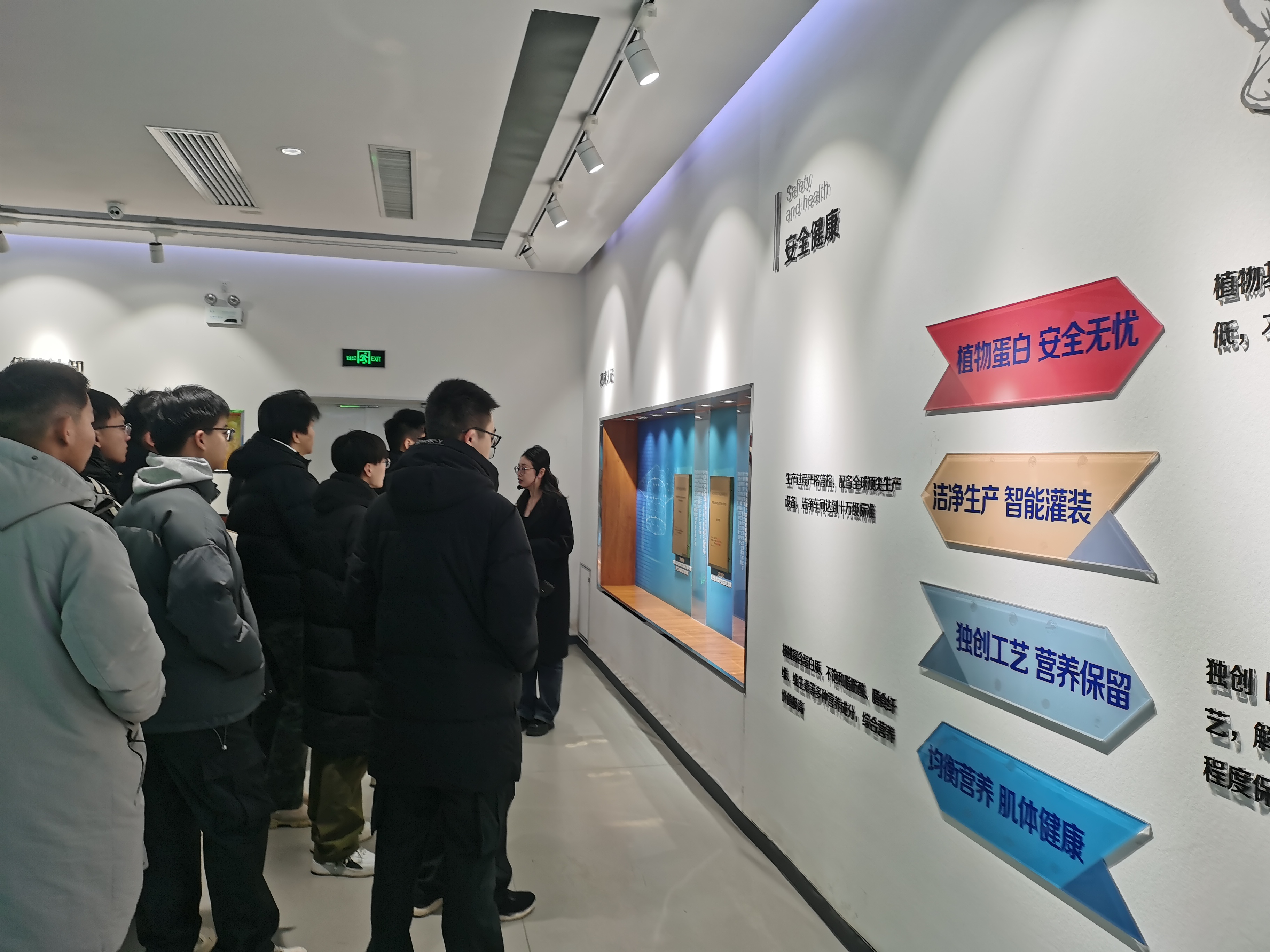 “在生產過程中,采用全核桃CET冷萃和五重細化研磨技術,有效去除核桃仁種皮的苦澀物質,同時最大程度保留核桃仁的全部營養,還原核桃乳最本真的味道……”在河北養元智匯飲品股份有限公司生產車間,學子們一邊聽工作人員介紹,一邊沿著參觀通道探秘一罐飲品的誕生過程。養元飲品通過技術創新實現了“從原料到成品”的每一步把控,令學子們深刻體會到現代農業科技的力量。
