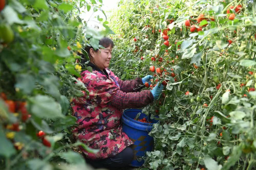 阜城縣阜城鎮張常巷村,村民在分揀櫻桃西紅柿。新華社發(崔賢飛 攝)
