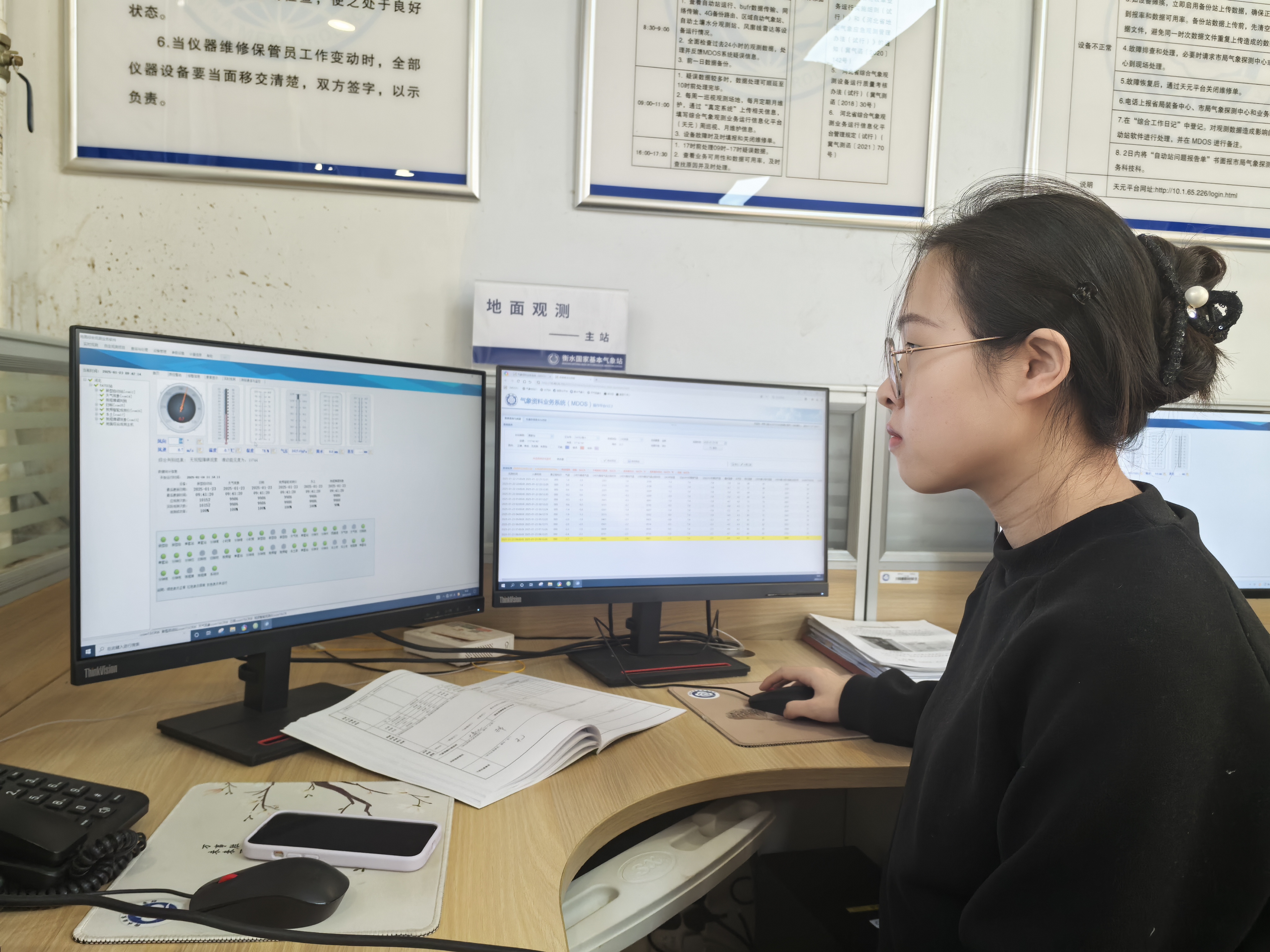 此時,觀測站附近的家屬院里已經漸漸熱鬧起來,人們提著禮物走親訪友。可肖瑋透過觀測站的窗戶,匆匆掃一眼這熱鬧的景象,便又緊張的工作中。她要在規定的時間內,準確無誤地記錄下氣溫、濕度、氣壓等各項氣象數據。這些數據將通過衛星和網絡,實時傳輸到氣象預報中心,為天氣預報提供最基礎的依據。“每一個數據都關乎著人們的生活,哪怕是極其細微的偏差,都可能影響到天氣預報的準確性。”