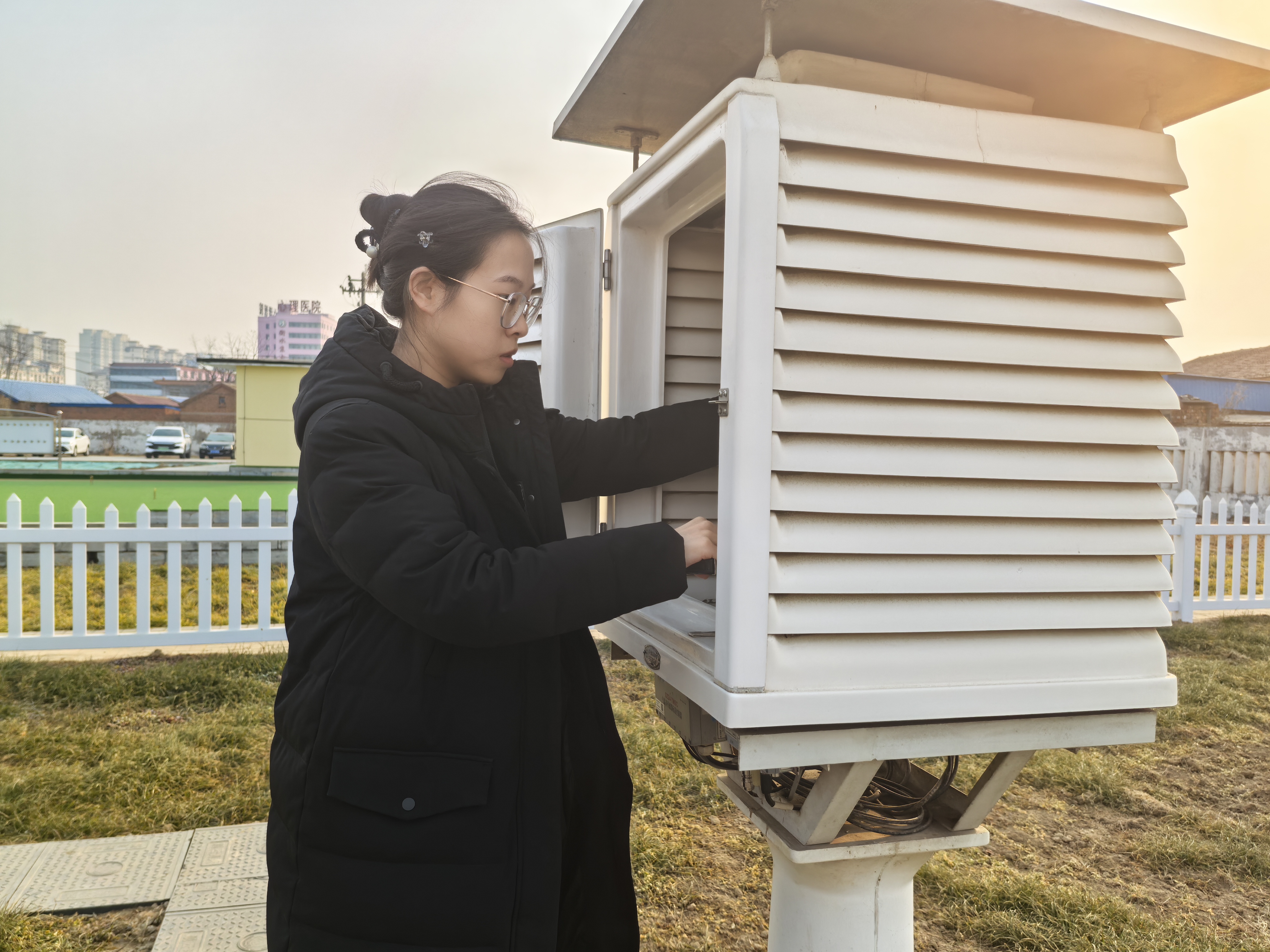 除夕的清晨,剛剛8時許,衡水市氣象局衡水國家基本氣象站的氣象觀測員肖瑋就已經來到了觀測站。觀測站里,各種儀器設備有序排列,它們是肖瑋了解天氣變化的“得力助手”。肖瑋首先對自動氣象站進行常規檢查,仔細查看百葉箱、風速儀、風向標、雨量傳感器等設備是否正常運行。盡管這些設備經過了無數次的校準和維護,但在這個特殊的日子里,她絲毫不敢掉以輕心。