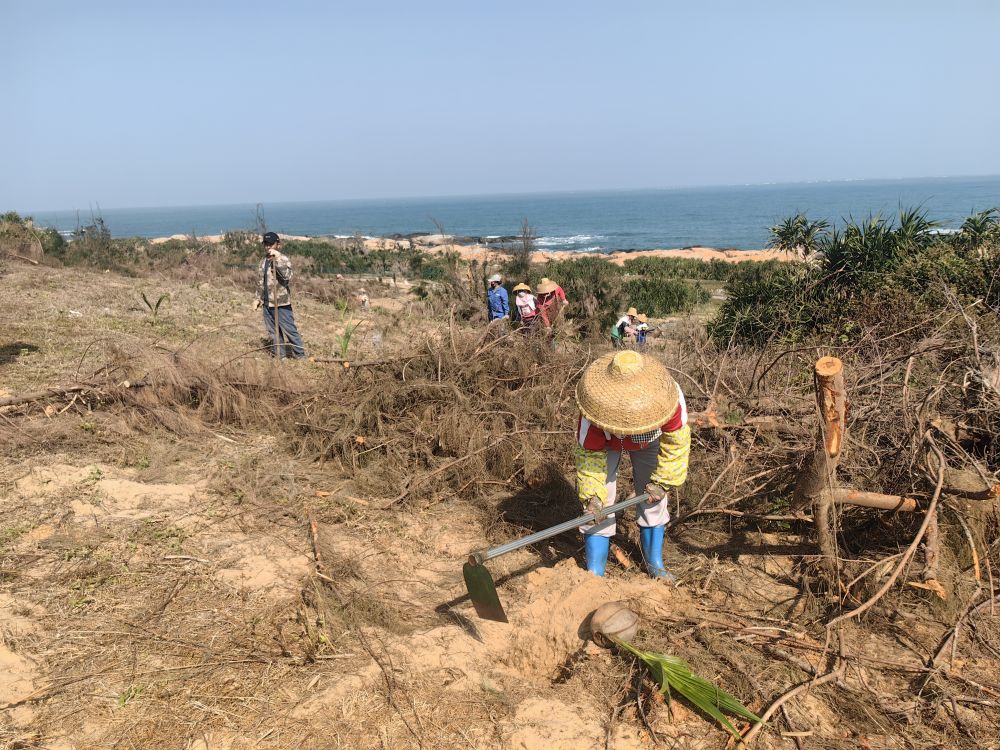 “和原來的木麻黃樹相比,椰子樹不僅抗風能力更強,也更加美觀?!惫と隧n吉衍嫻熟地將一鍬紅土鏟到剛種下的椰苗根部,并輕輕拍打夯實,“這一片椰林要種280畝,我們每天干八九個小時,這幾天就要種完?!?/p>