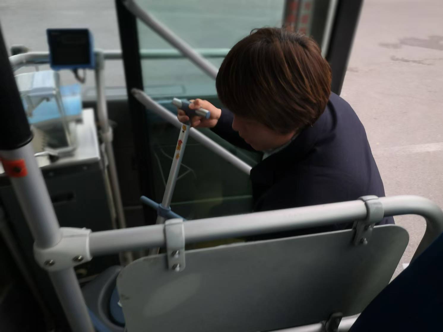 兩位阿姨上車了還忙著探討“到育才街該從哪兒下”,苗素梅趕緊問“去哪兒”又支招“一會兒換一路就行,您先坐著,到時候我叫您”。到站了,她的提示如約而至,“阿姨,您從這下,轉(zhuǎn)乘……”旁邊一阿姨感嘆:“你真好啊,我們得向你學習。”苗素梅笑著回應(yīng):“主要是有你們啊,是你們好呀。”