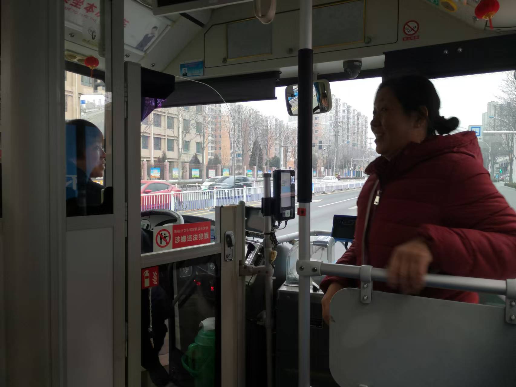 這不,苗素梅看著剛上車的兩位大哥,笑道:“新年好,還真就等著了!?”“啊,就等你呢!”原來,兩位大哥早上坐她的車過來購物,一路開心愉快,提前就約定還要坐她的車回去。二人坐定,公交車又一站站前行,“過年好”的問候再次一遍遍響起,溫情四溢。又一次問候聲起,兩位大哥突然幽默感嘆,“過年好、過年好,過年好累呀!”“可不是,全都回來了,都擠得我睡沙發(fā)了!”車廂里,大家默契地笑作一團。