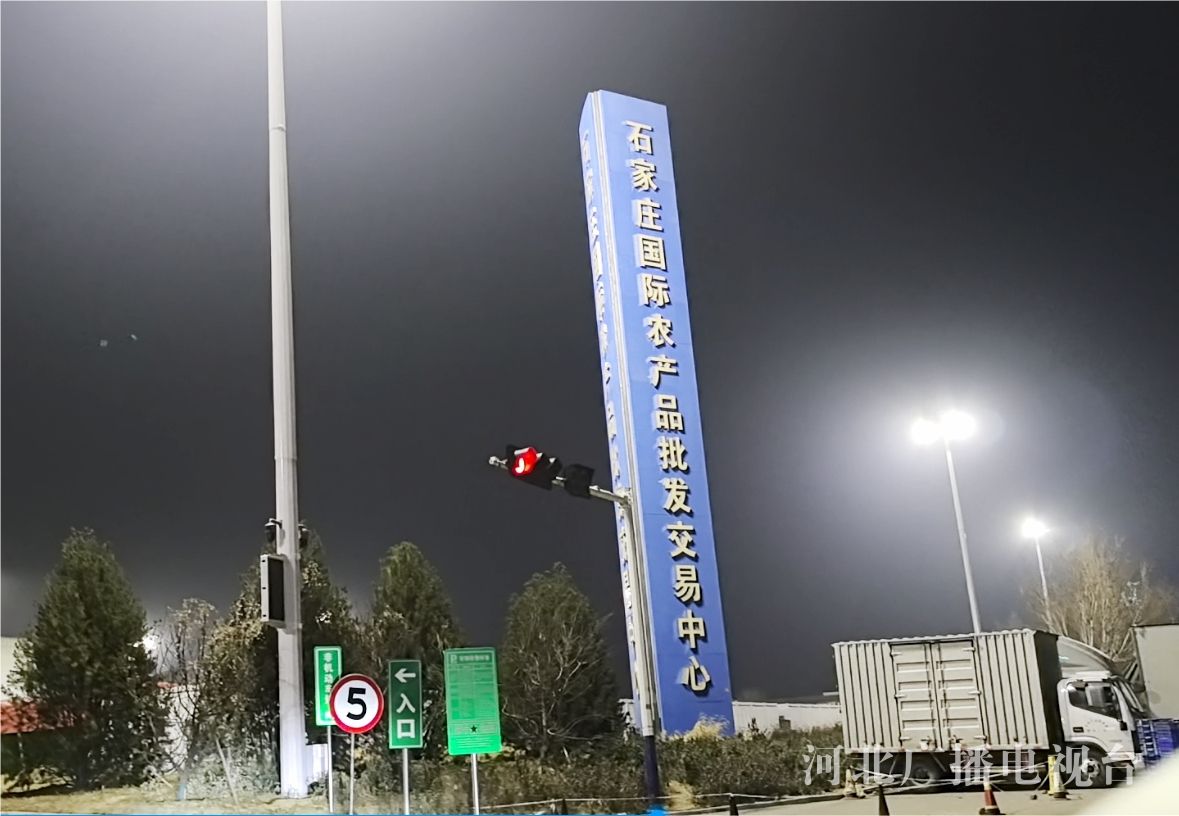 鐘表指針劃過凌晨3點,茫茫夜色籠罩下,記者驅(qū)車駛進燈火通明的石家莊國際農(nóng)產(chǎn)品批發(fā)交易中心,一進門就趕上帶隊值班的池彥魁在崗亭接待過往的車輛。