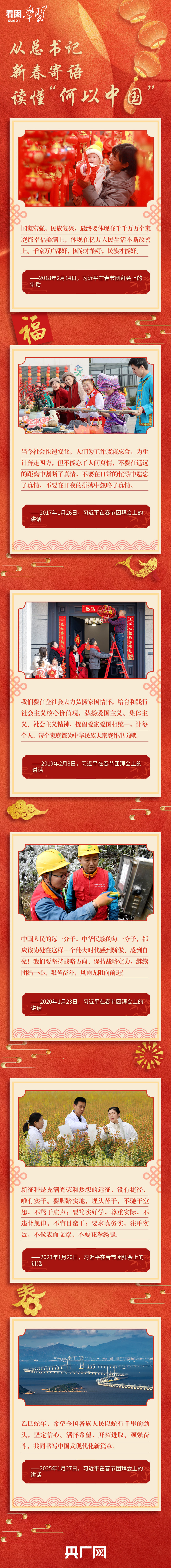 “千家萬戶都好,國家才能好,民族才能好。”“新征程是充滿光榮和夢想的遠征,沒有捷徑,唯有實干”……每年春節團拜會上,習近平總書記對同胞們飽含深情的新春祝福,鼓舞人心、凝聚力量。讓我們重溫這些暖心寄語,在新的一年里,堅定信心、滿懷希望,以蛇行千里的勁頭,為實現更加美好的未來不懈奮斗!