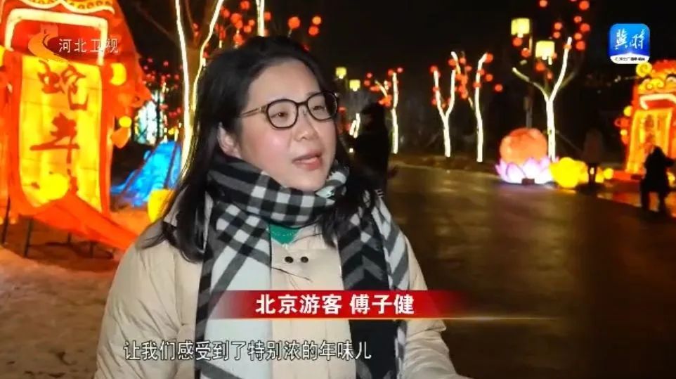 我現(xiàn)在是在承德避暑山莊新春燈會的現(xiàn)場,30多個場景,60多組花燈,每一組都是精雕細琢,栩栩如生,那我們大家在這里欣賞美景的同時呢,可以感受到傳統(tǒng)文化的獨特魅力。