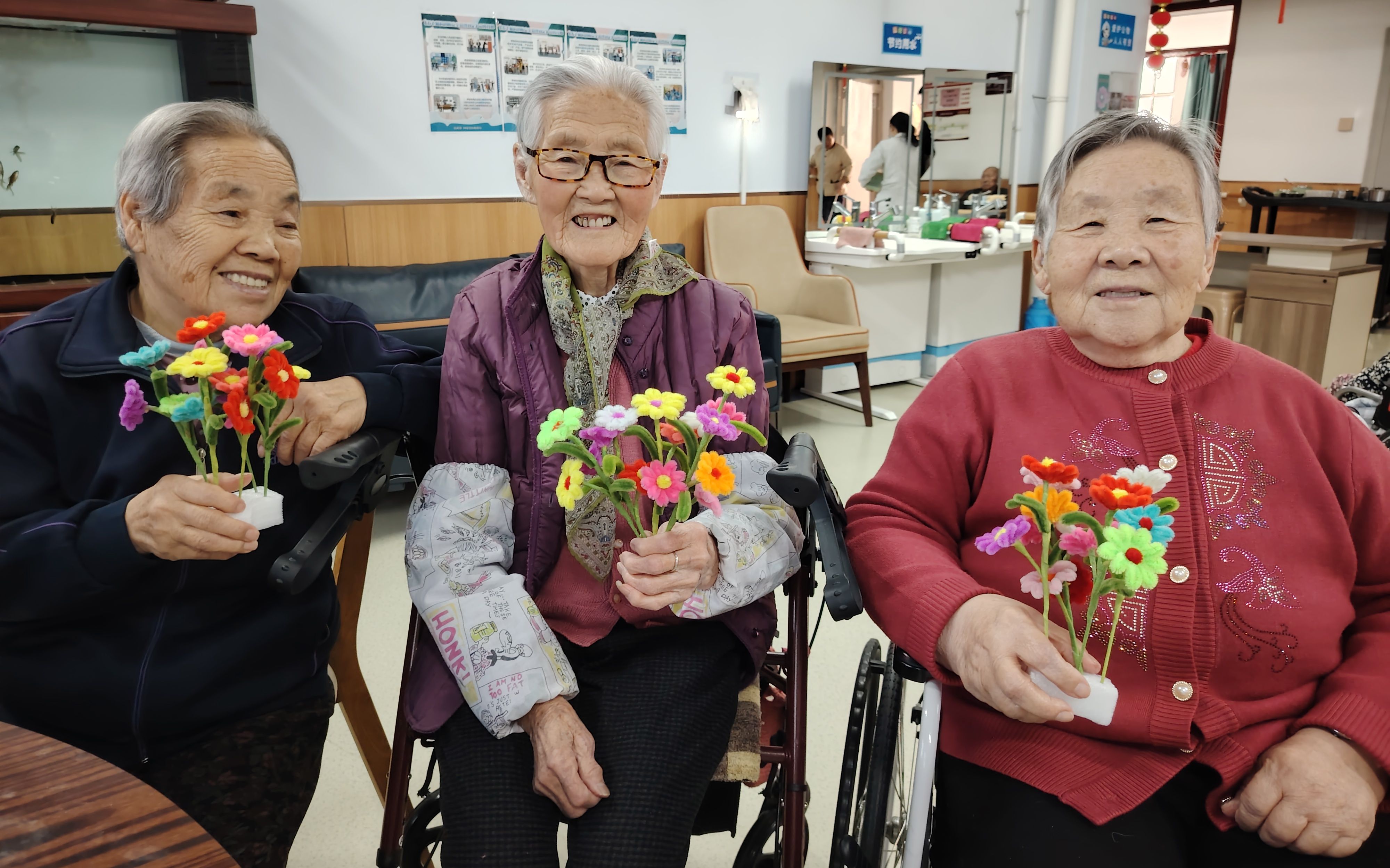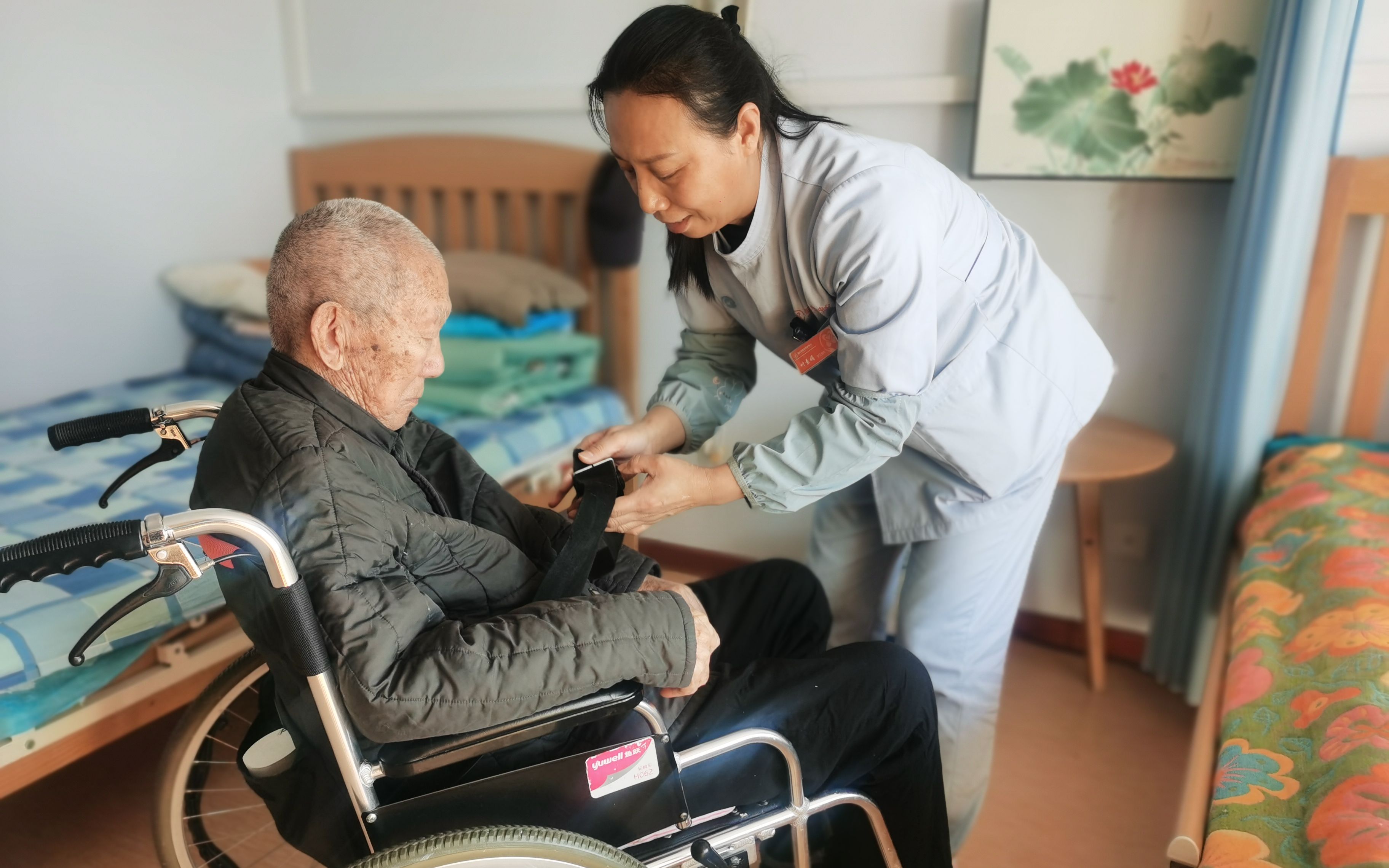作為護(hù)理員中的“老人兒”、護(hù)理組長,葉素娟應(yīng)對老人過節(jié)的經(jīng)驗(yàn)頗為豐富。她說,過年期間護(hù)理員最擔(dān)心的,就是老人被家人接走再送回來的那段時(shí)間,“家屬把老人接出去吃年夜飯,我們就會(huì)一直擔(dān)心,生怕老人吃不合適鬧病,等老人回來,我們要了解情況,查看他們的狀態(tài)等,確保一切正常。”