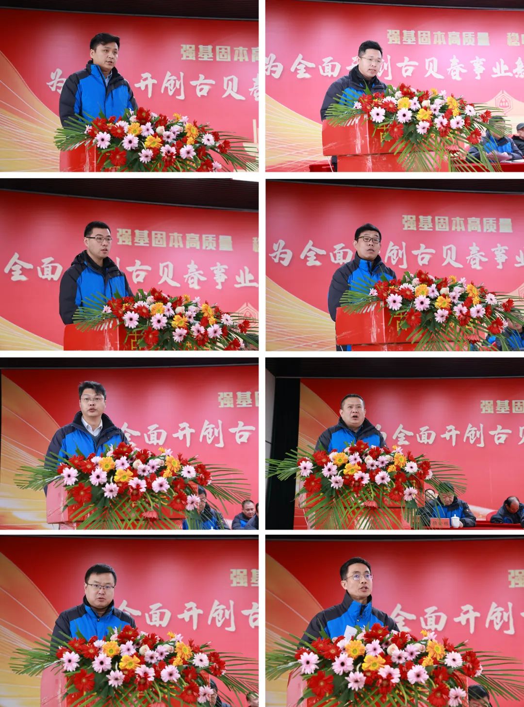 集團公司副總經理孫步東宣讀了《2024年度光榮冊》,對涌現出的先進集體、先進個人代表進行了表彰獎勵。營銷公司代表吳文博、生產技術代表王廣鵬、行政后勤代表丁北云等同志分別圍繞銷售、生產、行政等不同領域進行了表態發言,表達了決戰2025年的信心和決心。