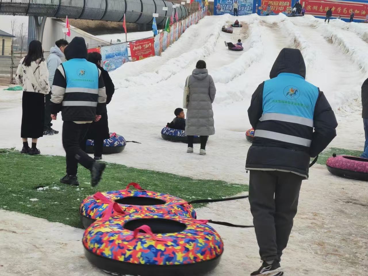 “請排隊入場,不要擁擠插隊,注意安全。”身著紅馬甲、佩戴紅袖箍的“文明引導員”分布在景區的各個角落。他們不僅為游客提供咨詢、引導等服務,還時刻關注游客的行為舉止,及時對不文明行為進行勸阻和糾正。在人員密集的區域,如燈會現場、表演場地、冰雪滑道等,安排專人負責維持秩序,引導游客有序排隊、文明觀賞,確保游客的安全和景區的秩序。