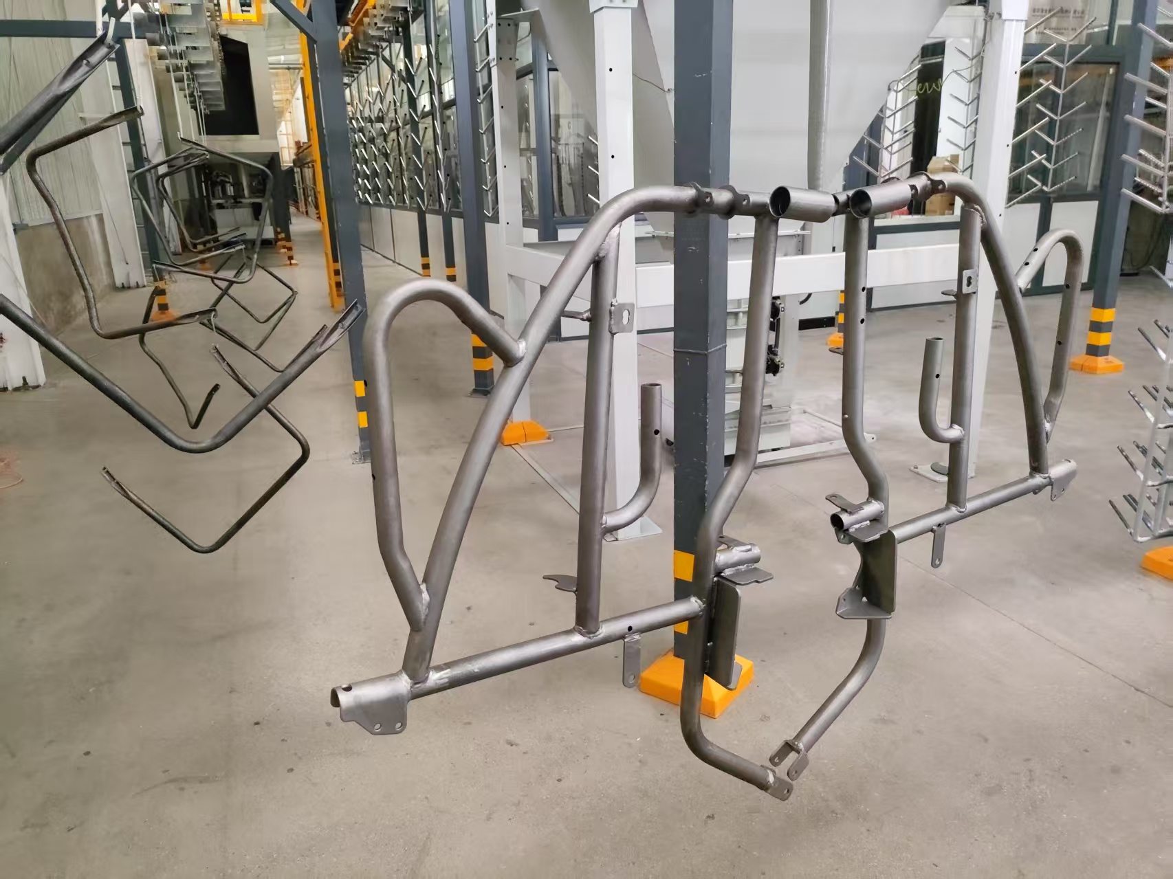 河北冀尚醫(yī)療器械有限公司噴涂共享工廠位于冀州區(qū)醫(yī)療器械和康復(fù)輔具產(chǎn)業(yè)園內(nèi),其智能化噴涂流水線長483米,相比于傳統(tǒng)工藝,設(shè)備增加了噴涂前藥液處理、純凈水洗凈、烘干、工件外表面去油陶化工序,可以有效解決拋丸除銹工藝只能處理工件外表面銹跡的問題,有效提高了噴涂粉末附著力,生產(chǎn)效率和環(huán)保等級(jí)大大提升。