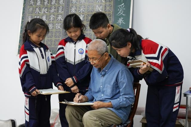 “我能活多久,我就教多久,只要身體允許,我就一直教?!遍L時(shí)間寫字,讓李貴江的右手得了腱鞘炎,但他依舊堅(jiān)持上課。這些學(xué)生似乎已經(jīng)成了他的“親人”,要是因?yàn)榇蜥樝撞荒芨@些孩子見面,他就像“兩天沒吃飯”一樣。