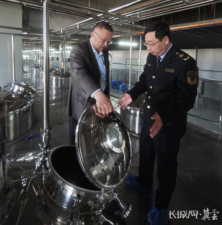 石家莊市高新區市場監督管理局(知識產權局)副局長、知識產權專員智少華(右)在河北瑞龍生物科技有限公司調研。長城網·冀云客戶端記者 白亞軍 攝