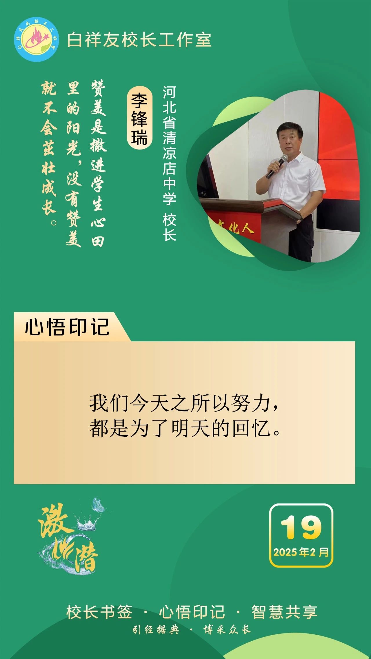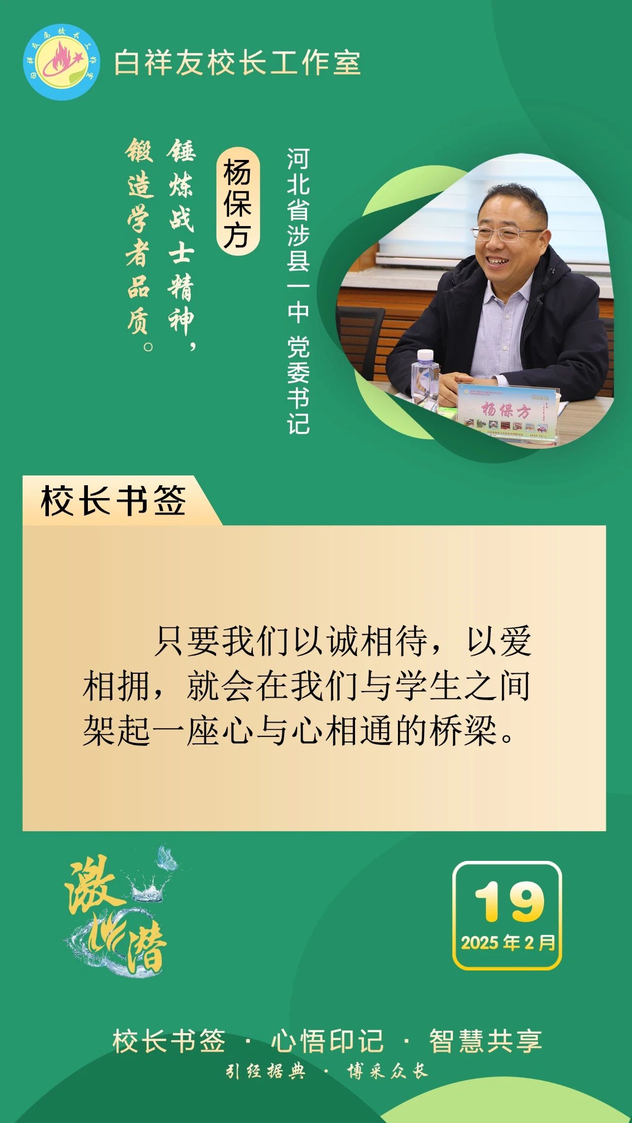“白祥友校長工作室”成立于2019年4月,是教育部“國培計劃”中小學名校長領航工程、河北省首批名校長工作室,目前省內外成員校56個。工作室堅持“資源共享、智慧共融、互助共贏”理念,已成為思想碰撞的交流場,資源共享的品牌站,成果展示的輻射源。